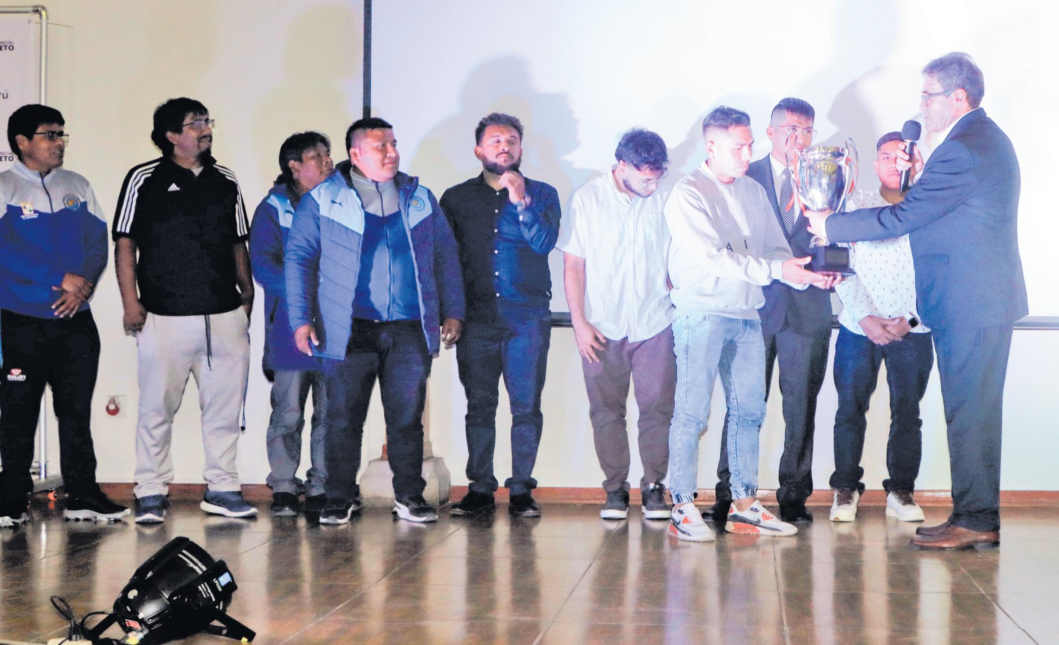 |JoséRíosentregaelTrofeoDGTVPERÜaHijosdelAltiplanoCampeónDepartamental. |