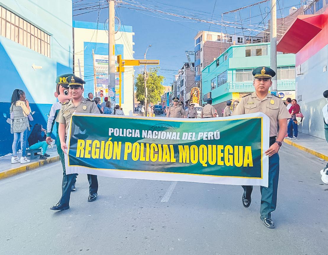 Al conmemorarse el Día de SantaRosadeLimaeste30de agosto, personal de la Policía Nacionalrealizóellunes28de agosto un pasacalle por las diferentes arterias de la ciudaddeMoquegua.
