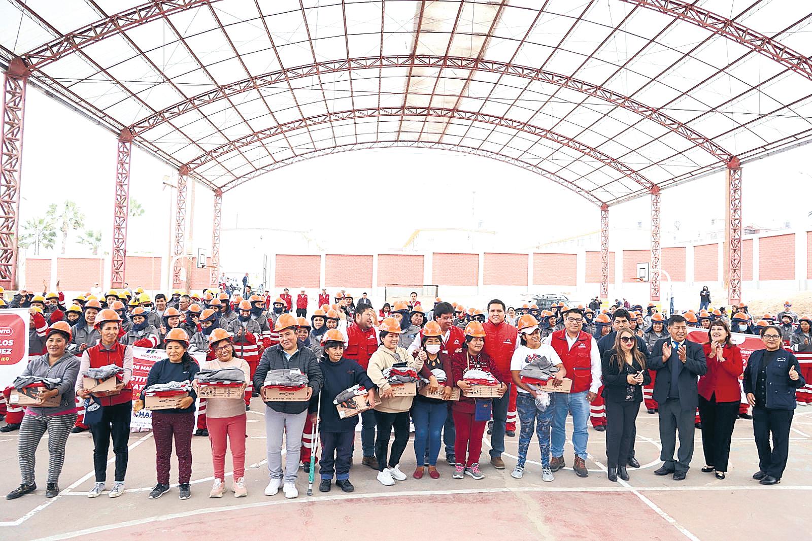 Labordemujerescontribuyenenelmejoramiento delasinfraestructuraspúblicasdetodalaregión Moquegua.Másde550personassonbeneficiadas conpuestosdetrabajo.