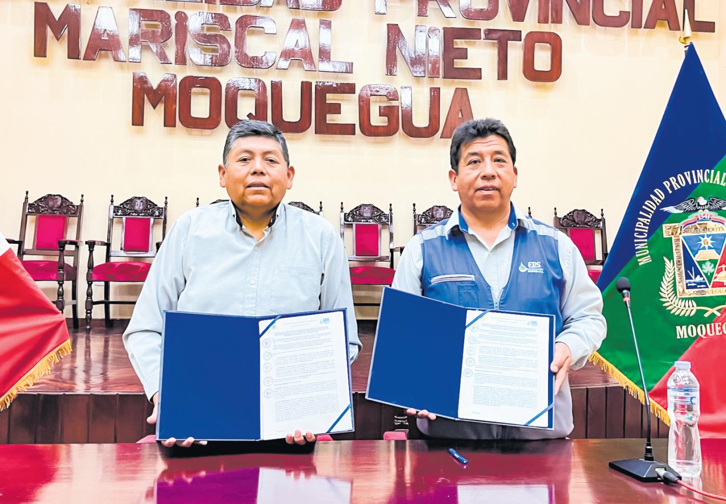 La Municipalidad Provincial deMariscalNieto(MPMN)firmó un convenio con la Entidad Prestadora de Servicios (EPS) Moquegua para la ejecución de 4 fichas de mantenimiento que permitirá mejorarelserviciodeaguapotable.