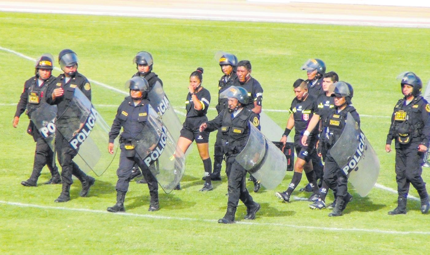 efectivos policiales, ante insultos del respetable. Por el bien del fútbol y ejemplo de la juventud, esto no debe repetirse nuncamás.