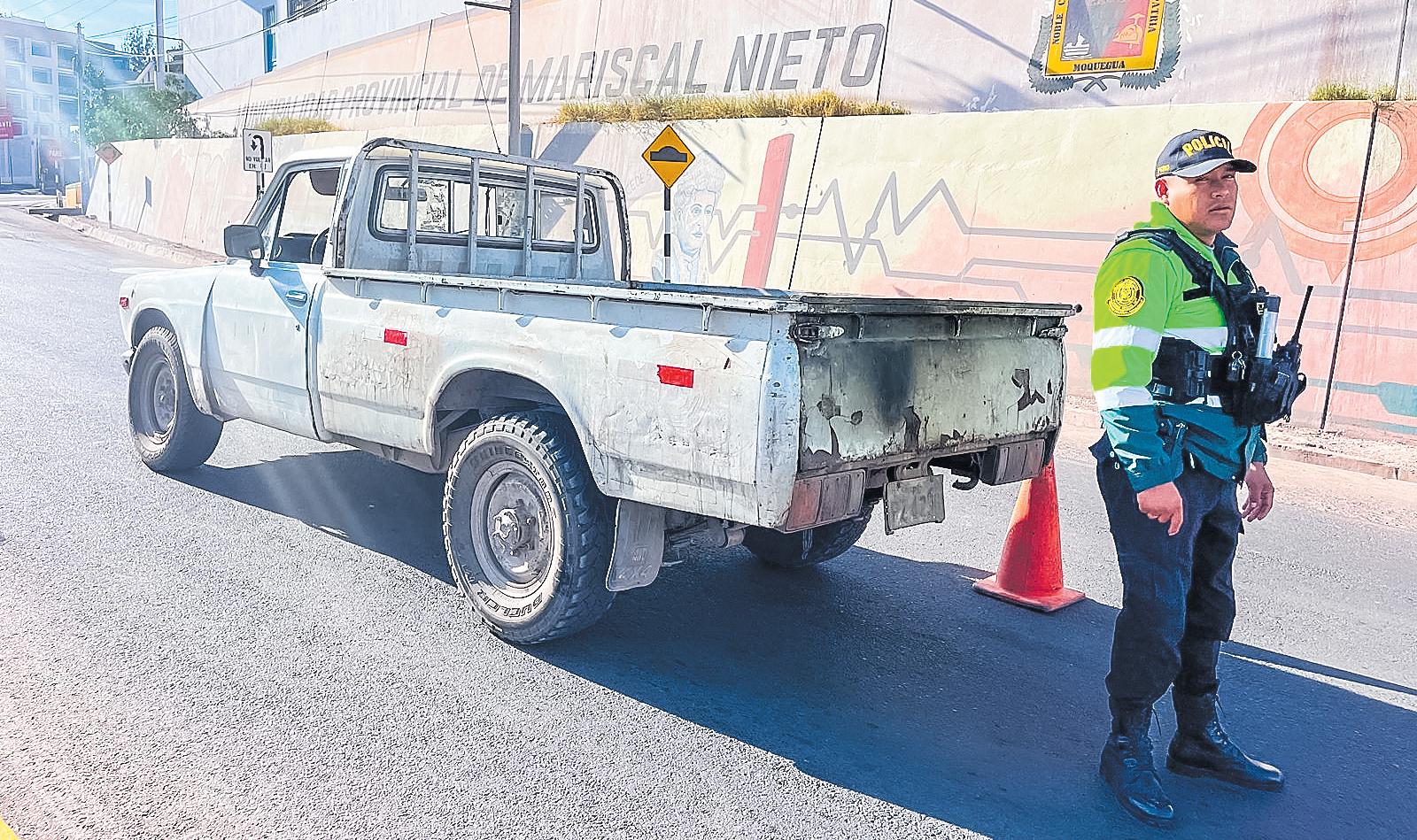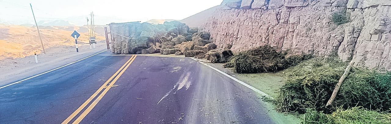 Launidadvehicularquehacía la rutaTacna – Moquegua, cargaba pacas de forraje y estaba en posición de medio to-