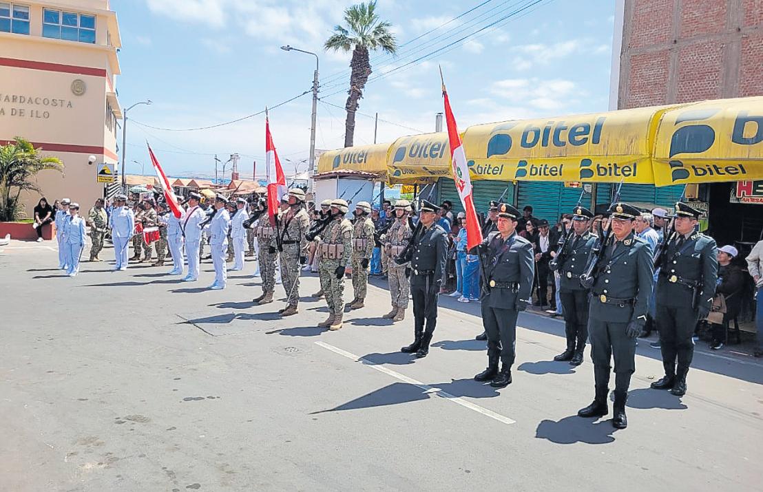Autoridades civiles y militares de la provincia de Ilo y miembros de las Fuerzas Armadas y Policía Nacional, participaron en la ceremonia por el 202° aniversario de la Marina de Guerra del Perú y el 144° ani-