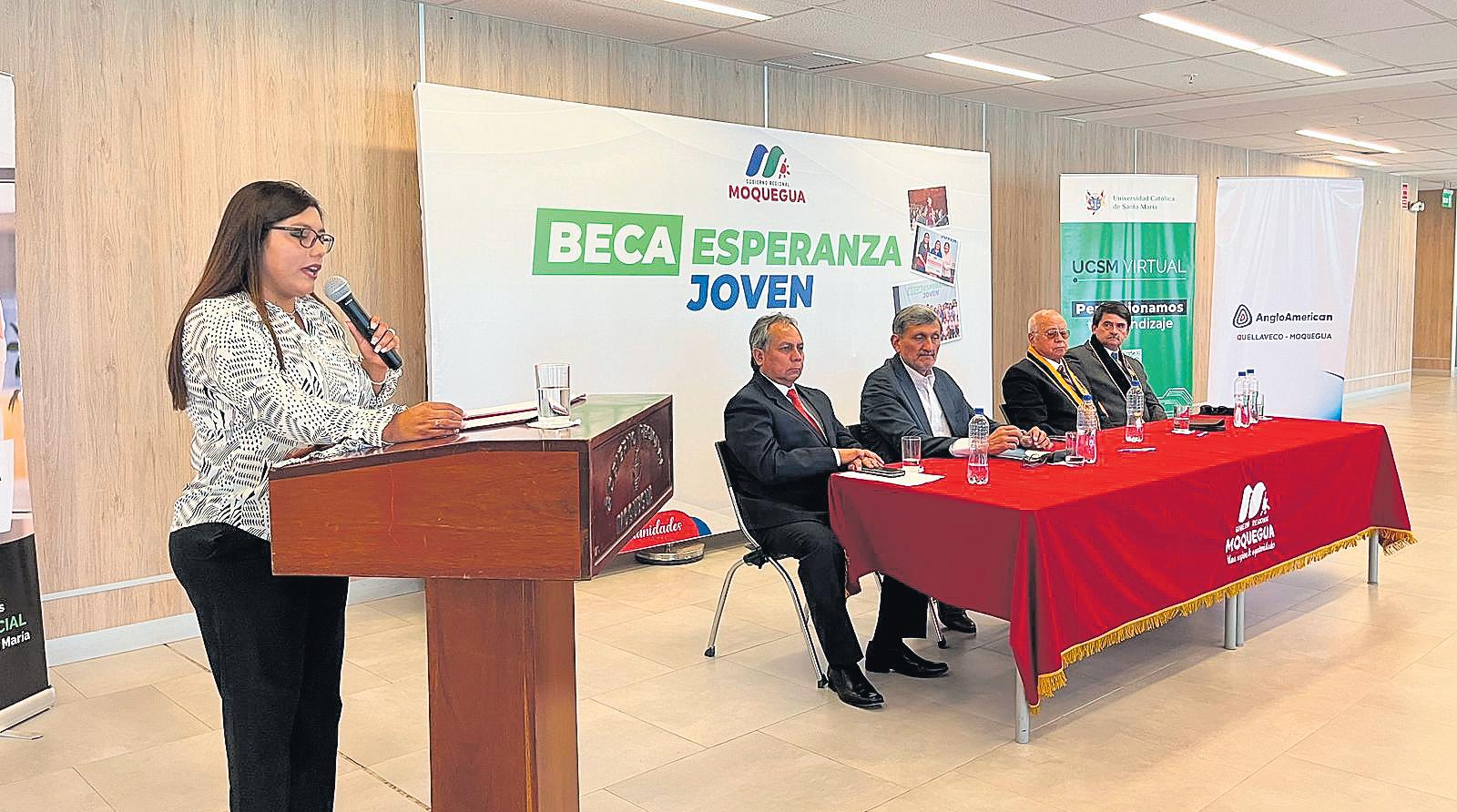 El programa de becas Quellaveco+ que impulsa Anglo American ha unificado esfuerzos con el programa Beca Esperanza Joven del Gobierno Regional, para dar oportunidades de estudios universitarios a 400 jóvenes moqueguanos durante los próximos cinco años, hasta que culminensusestudios.
