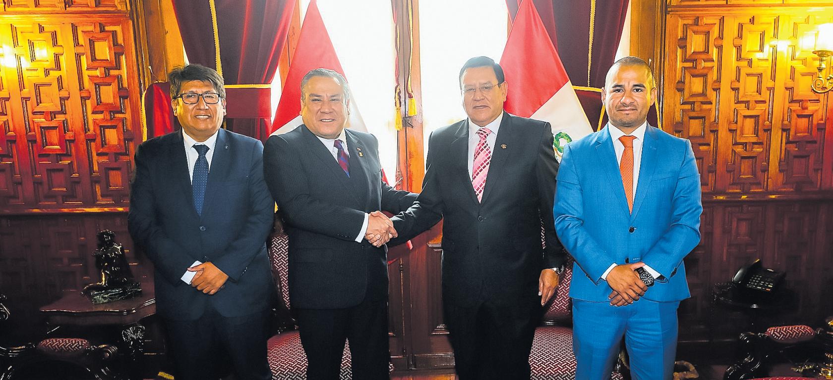 | GustavoAdrianzén junto al presidente yvicepresidentes del Congreso.|