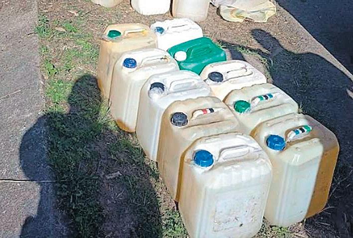 taba aproximadamente lleno en un cuarto, y el otro estaba lleno hasta la mitad de combustible (petróleo). Además, se encontraron veintisiete galonerasvacíasconunacapacidad de 20 litros cada una, y una galonera llena de combustible (petróleo), conectada aunabombaeléctrica.