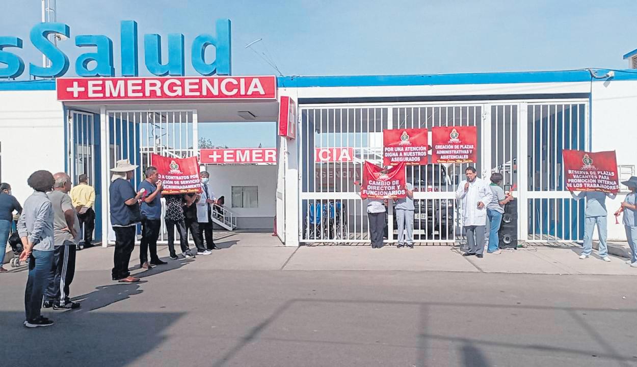 Lossindicatosdetrabajadores asistenciales del Hospital de EsSalud llevaron a cabo un plantón en protesta contra la indiferencia mostrada por el director, administrador y demás funcionarios, quienes no han resuelto la problemática existente a pesar de los repetidos pedidos y la ausencia de mejoras.