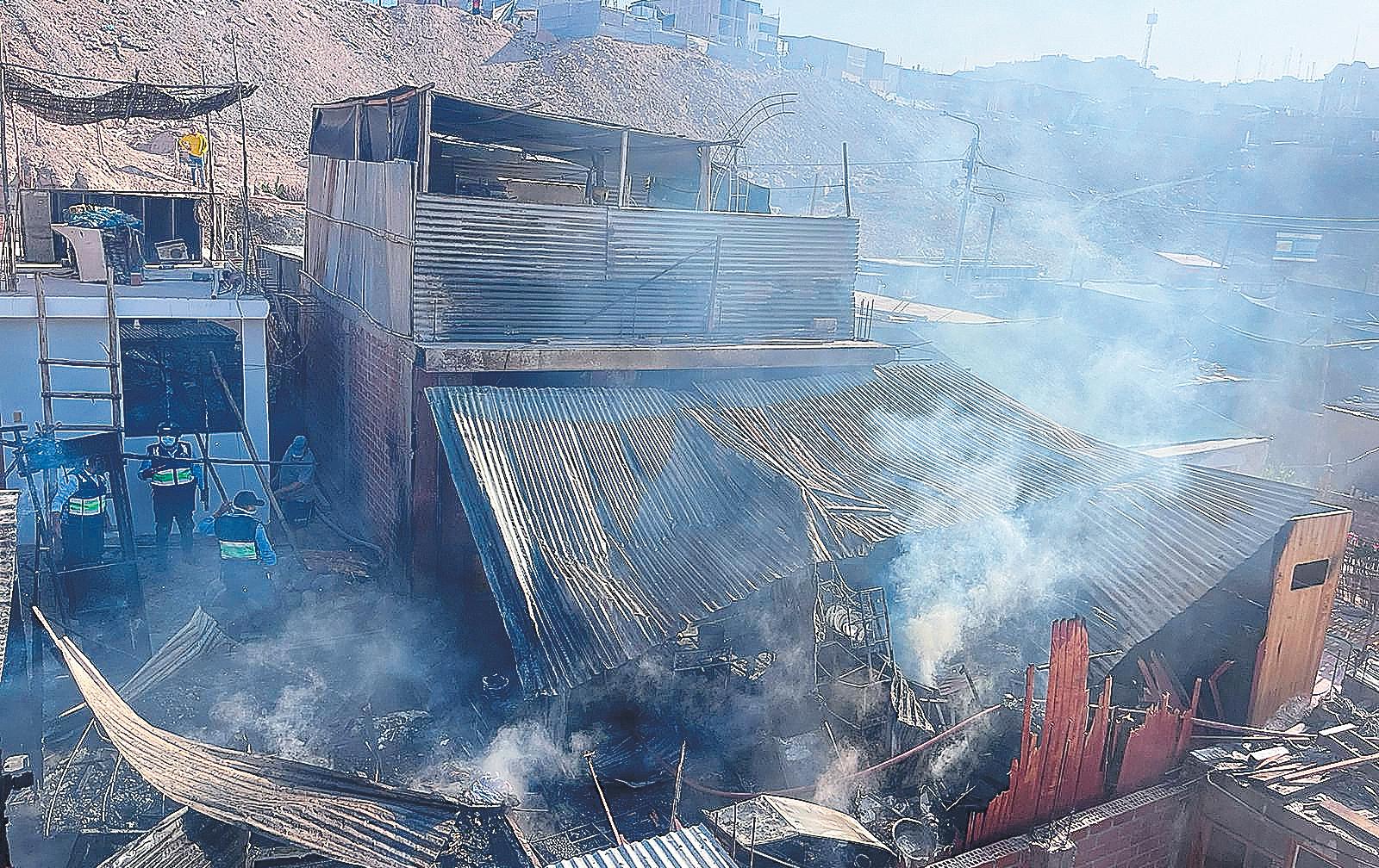 módulos de madera y calaminas afectados estaban ubicados entre dos inmuebles de material noble. Se quemaron utensilios, ropa, muebles y otros bienes. Tras apagar el fuego, se procedió a remover los escombros para prevenir quereavivaelincendio.