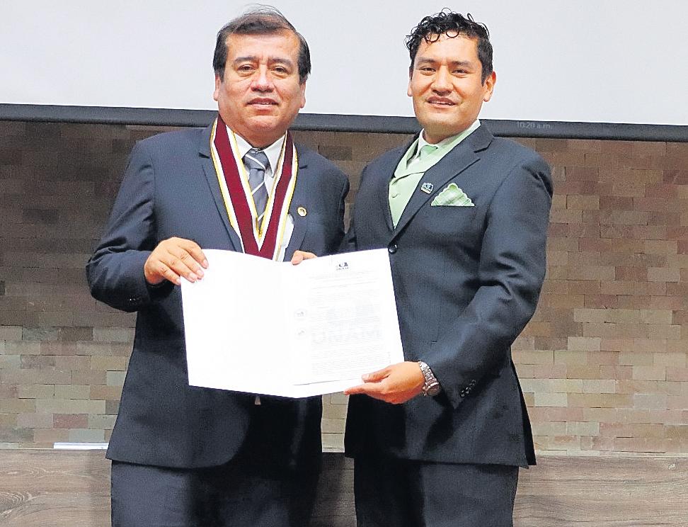 Finalmente, el Dr. Franco Medina entregó la Resolución de Felicitación al Dr. Christ Jesús Barriga Paria, docente de laUNAM,porhabergestadoy