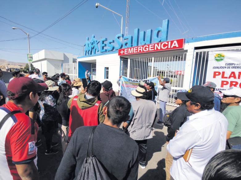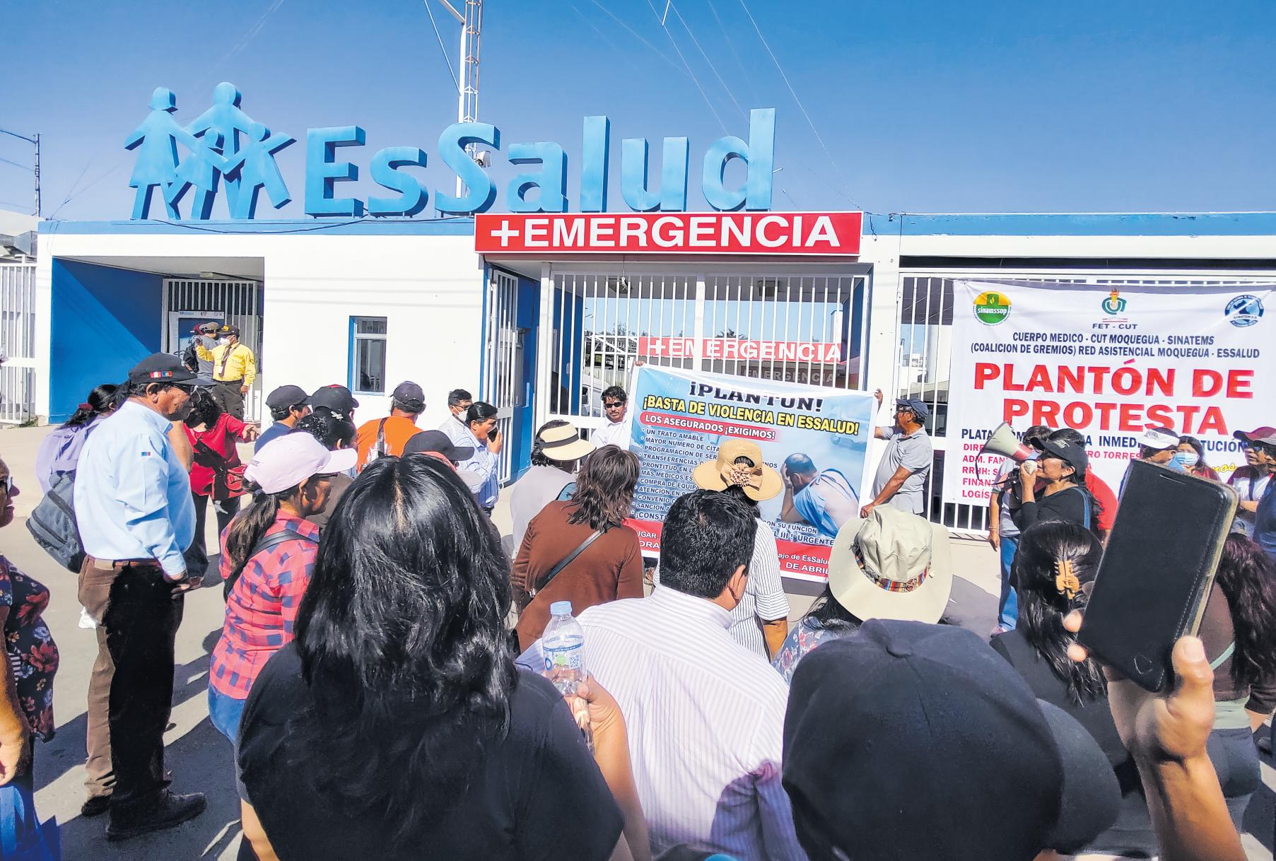 Asegurados rechazan a trabajadores que realizan plantones en EsSalud Moquegua. |