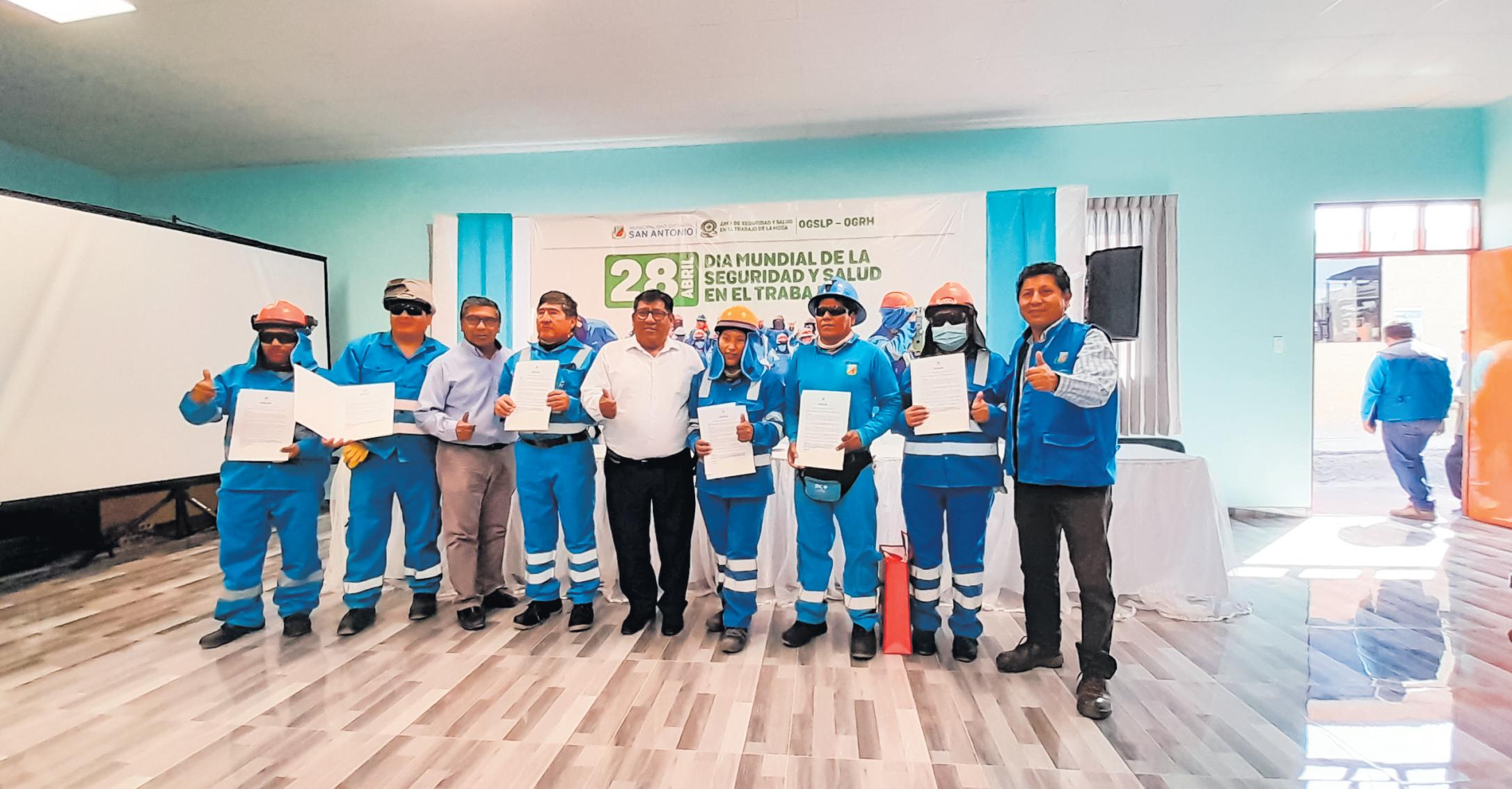 Elalcaldedistrital,Ing.Santos Villegas, presidió la actividad en la que se reconocieron a 28 obreros de los diferentes proyectos que lleva a cabo la MDSA.