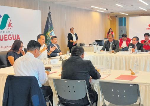 El alcalde distrital de Samegua, Juan Antonio Eyzaguirre, dio a conocer la problemática que enfrentan los municipios anteloscongresistasqueparticiparon en la trigésima sexta sesión extraordinaria descentralizada de la Comisión de Presupuesto y Cuenta Ge-