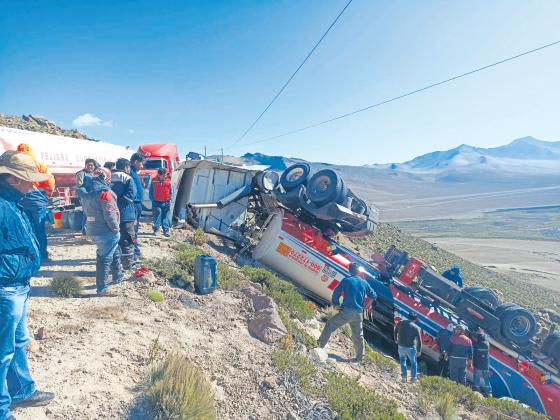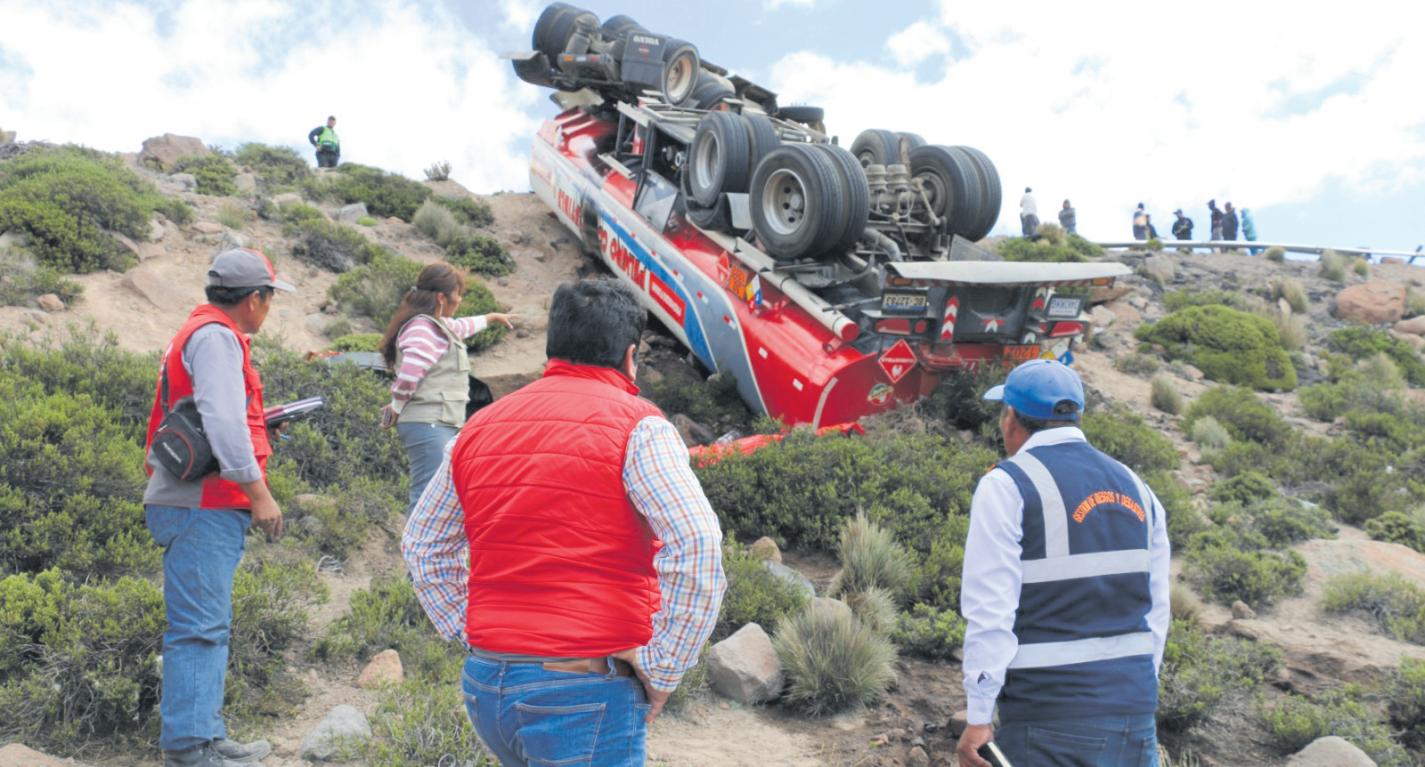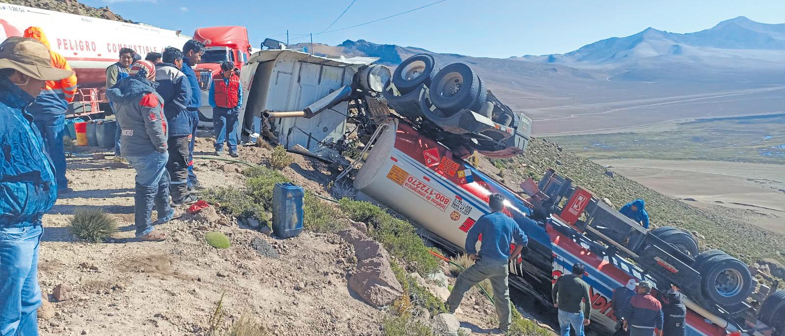 Se informó sobre el vertimiento de gran parte de los 9,000 galones de petróleo que transportaba el vehículo, temiéndose que llegue a alguna fuente de agua. ■ PÁG.05