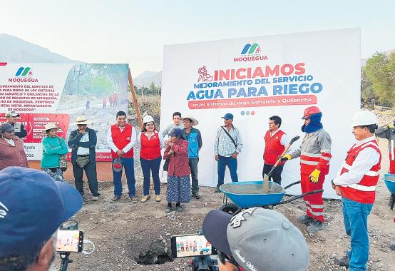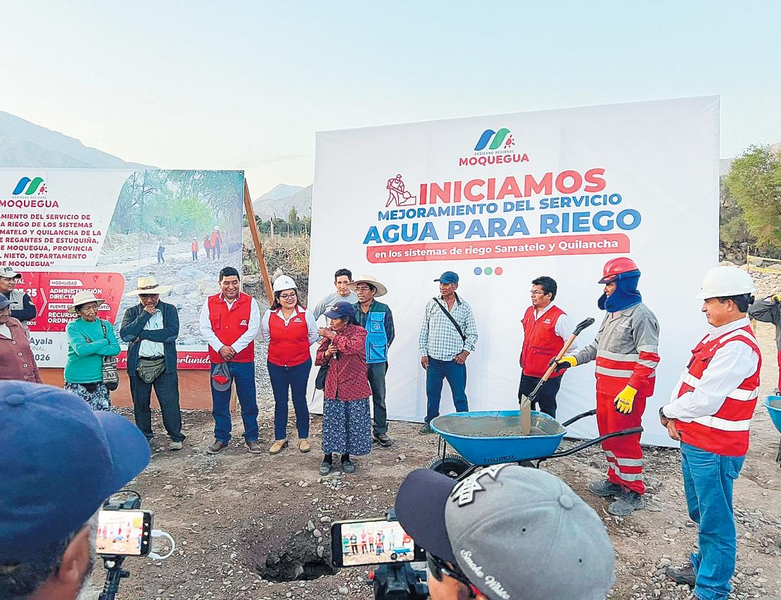 El Gobierno Regional de Moquegua ha dado inicio al proyecto de mejoramiento del servicio de agua para riego en los sistemas de riego Samatelo y Quilancha, a cargo de la Comisión de Regantes de Estuquiña. Esta iniciativa requiere una inversión significativade3millones248milsoles, con un plazo de ejecución de180días.
