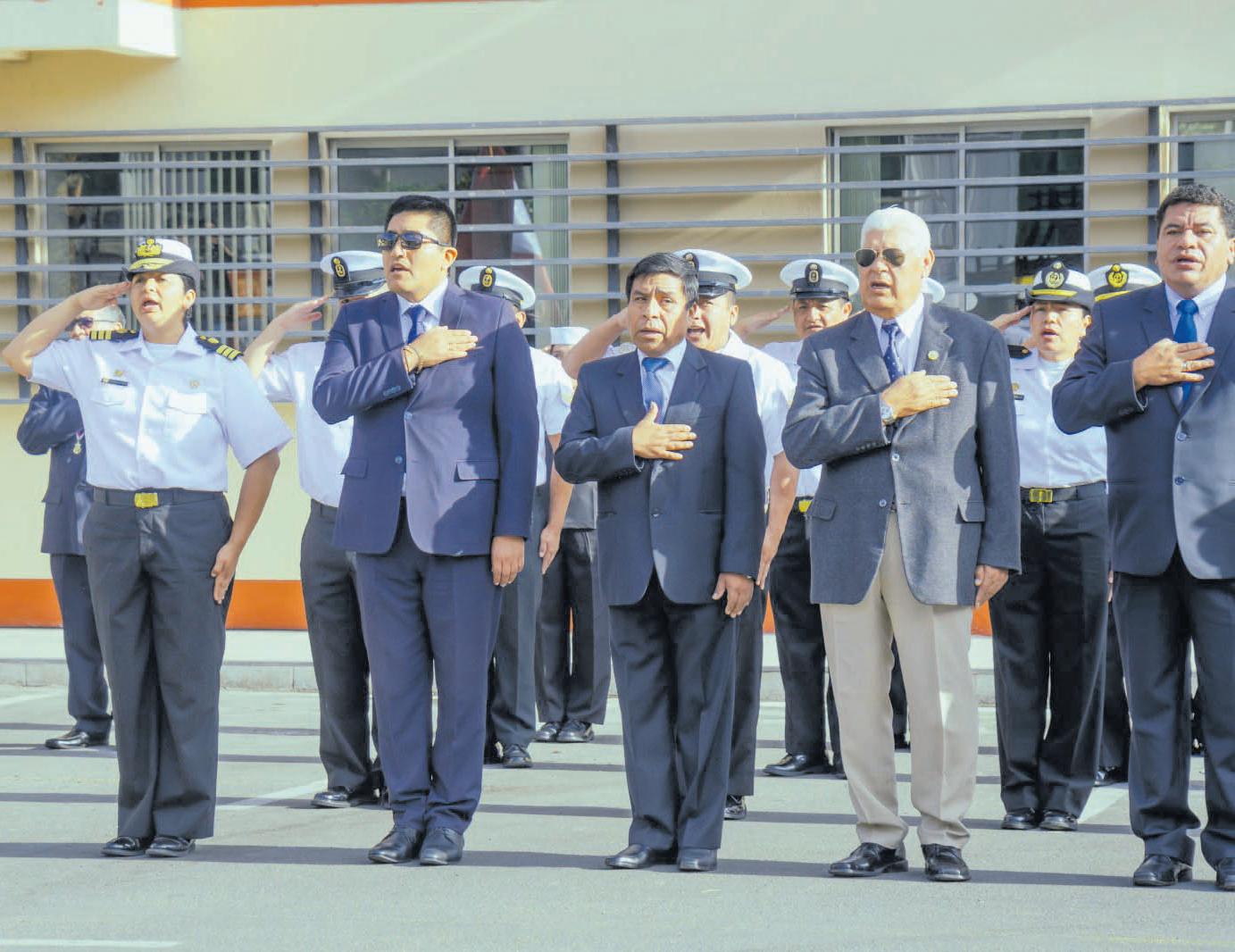 laNúñezdelPrado,yelalcalde provincial,HumbertoTapia,estuvieron a cargo el alto honor de izar el Pabellón Nacional.El discursodeordenestuvoacargo del Prof.NicolásValdez Casu,quien hizo una reseña históricasobreelCombatedePacocha. Luego, se interpretó el himnodelaMarinadeGuerra delPerú.