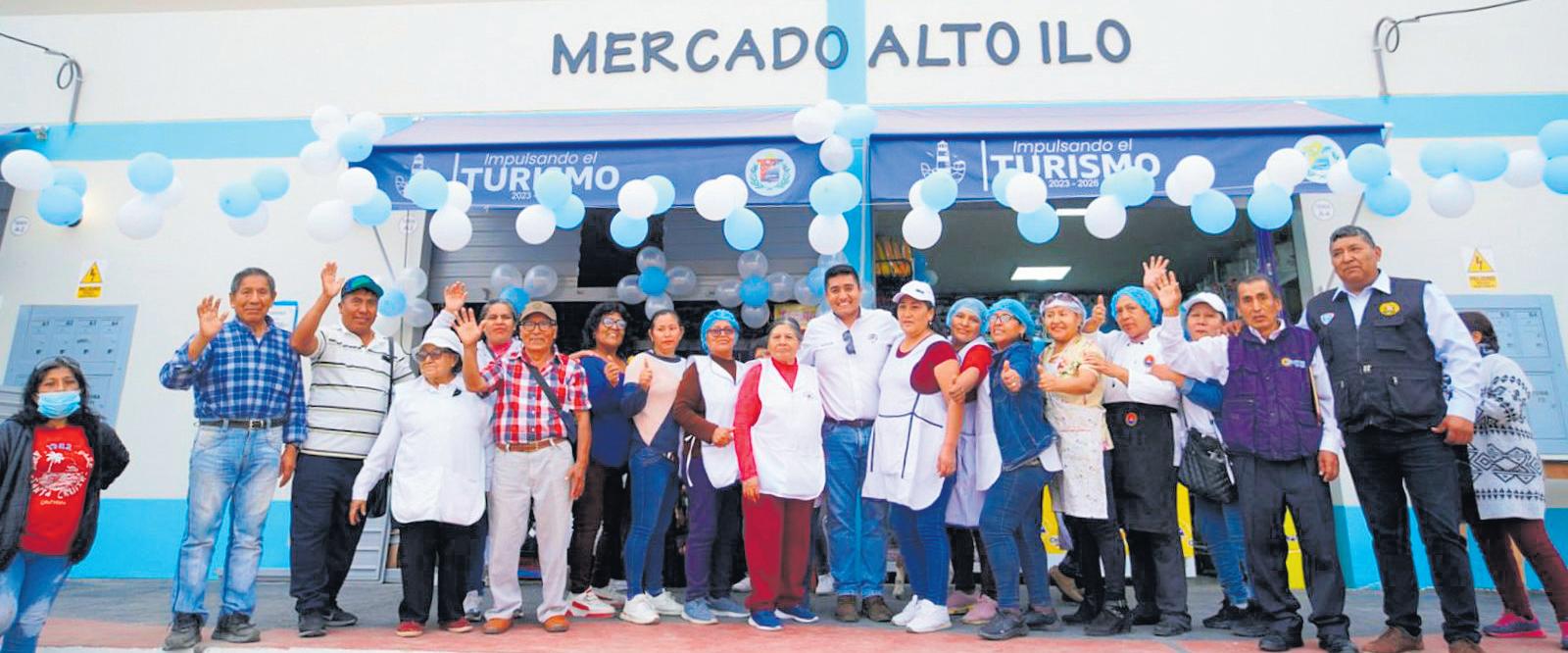 beneficio de Alto Ilo,incluyendo la licitación de nuevas rutasdetransportepúblico,larenovación de troncales de alcantarillado y la pavimentacióndepistas.Advirtióalosdirigentes vecinales que deben mantener abiertas las losas deportivas, de lo contrario, él mismo romperá los candados que impiden que los jóvenes utilicen los espacios públicos deportivos. El teniente alcalde, Carlos Mamani Tellez, recorrió el renovado mercado y brindó con los asistentes para celebrar la entrega de este ansiado proyecto.