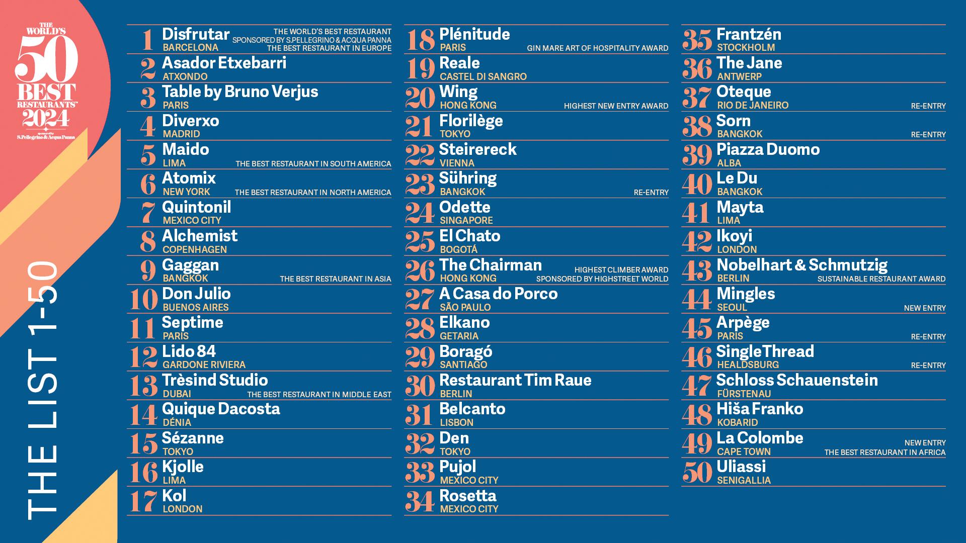 LalistaTheWorld's50Best Restaurants, que anualmente evalúa y premia a los mejores restaurantes del mundo, es consideradaunadelasmásin-