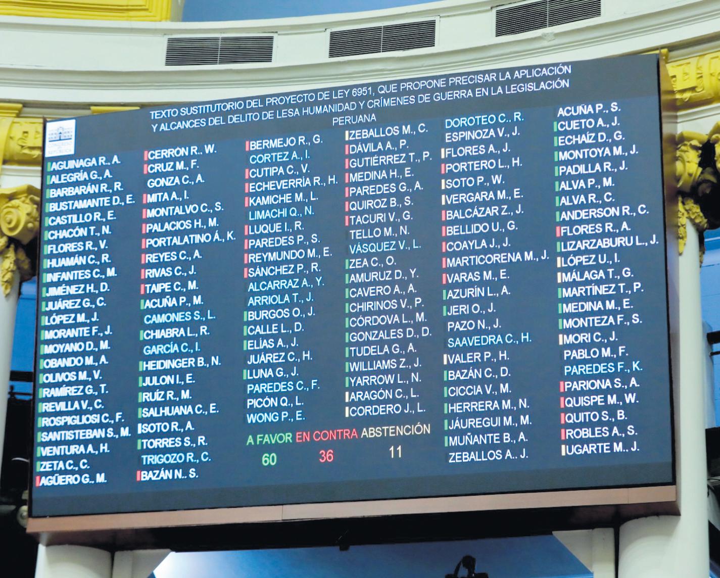 El Pleno del Congreso aprobó, en primera votación, el proyecto de ley que establece la prescripción de los delitos de lesa humanidad cometidos enelPerúantesdel2002.
