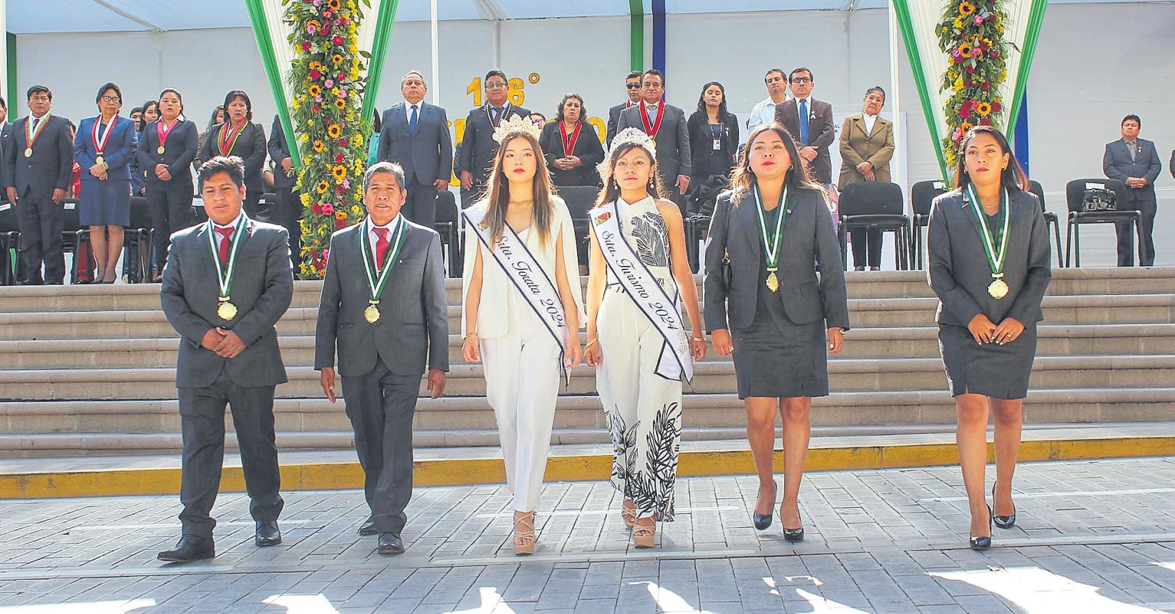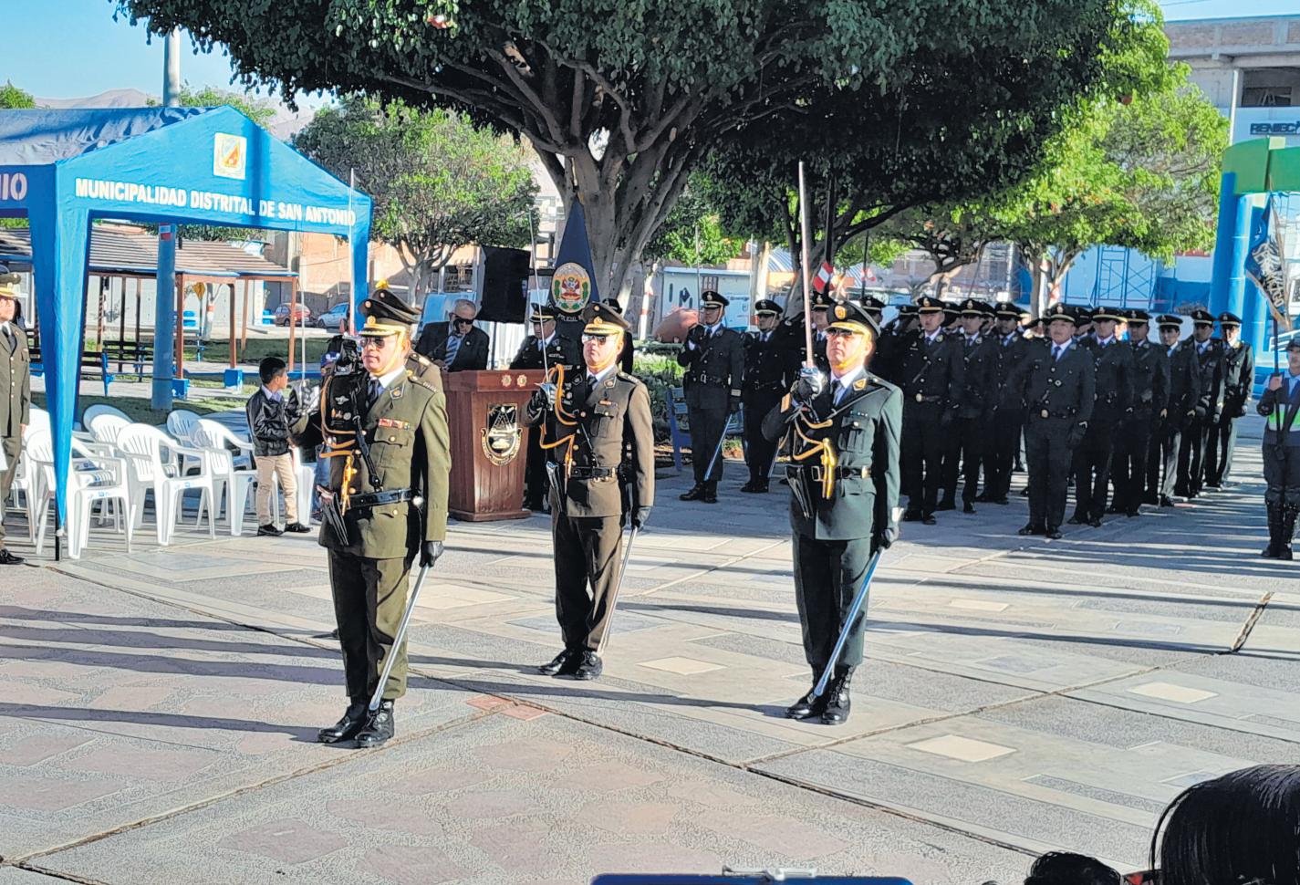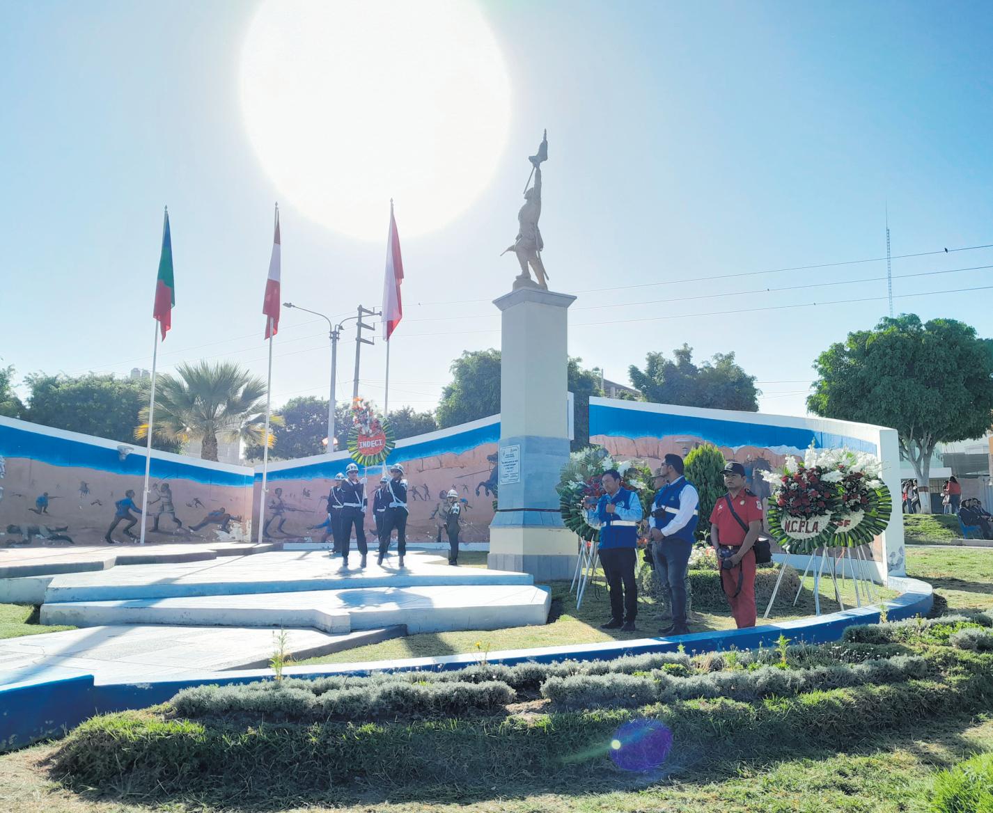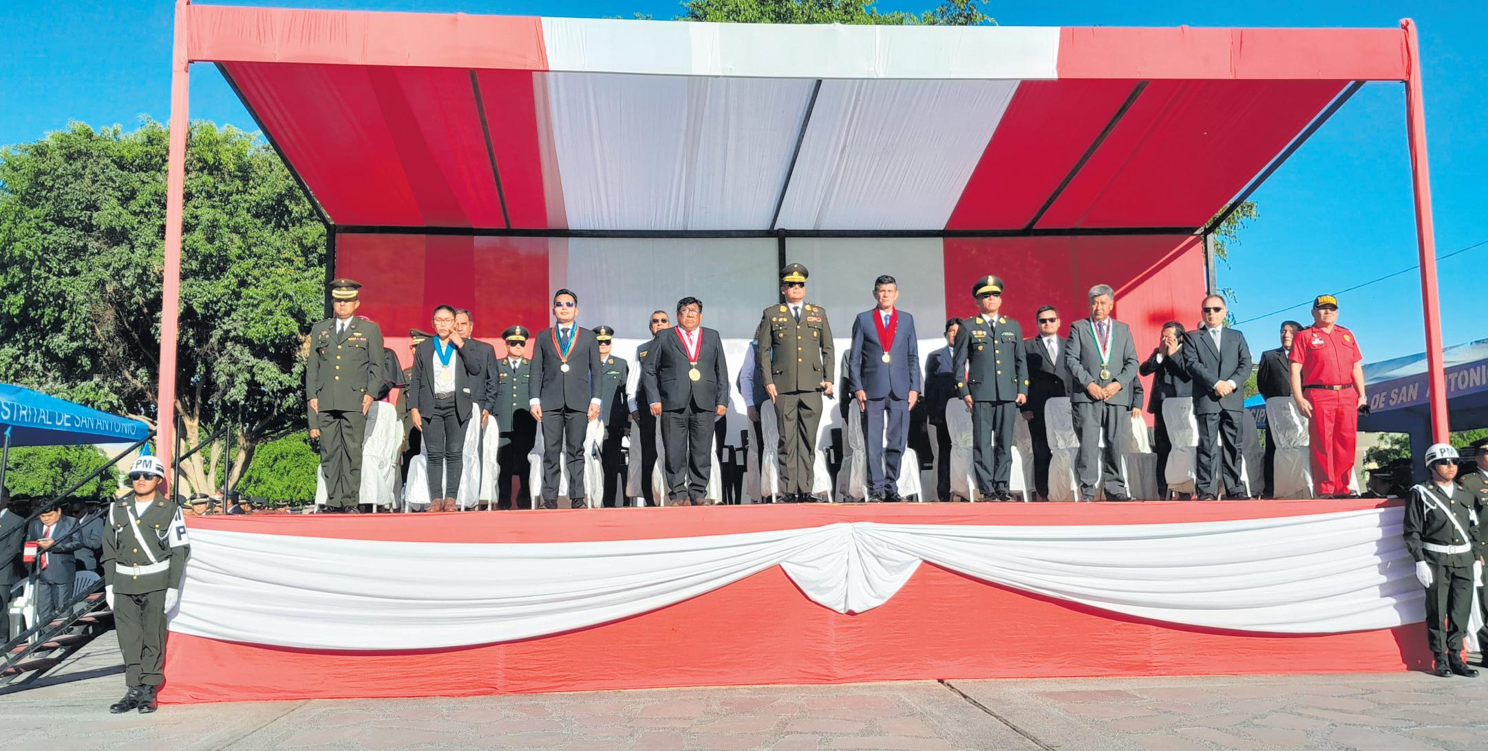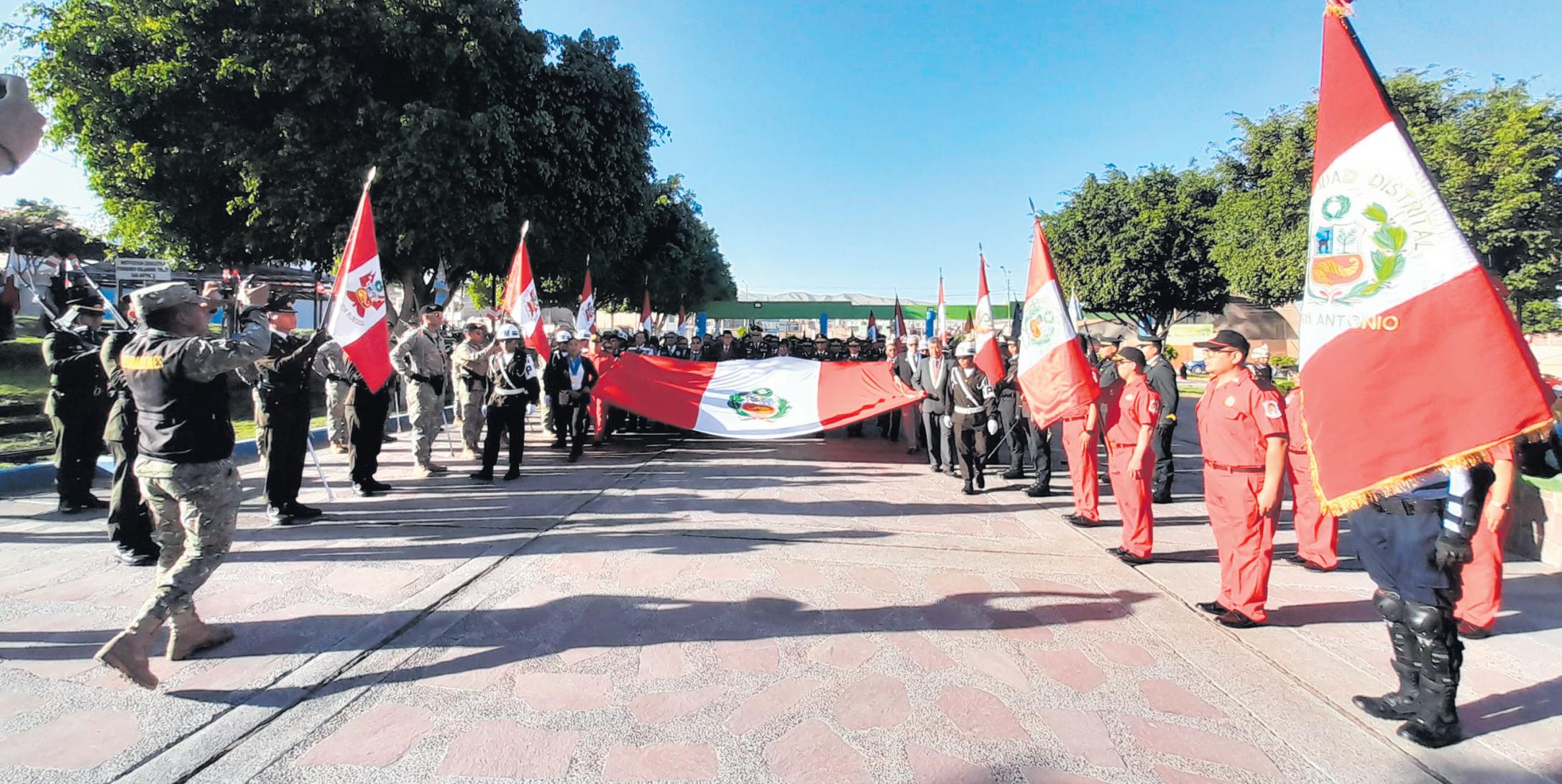 En la plaza cívica del distrito deSanAntoniosellevóacabo laceremoniadehonoralcelebrarseelDíadelaBanderayel 144° aniversario de la Batalla deArica.