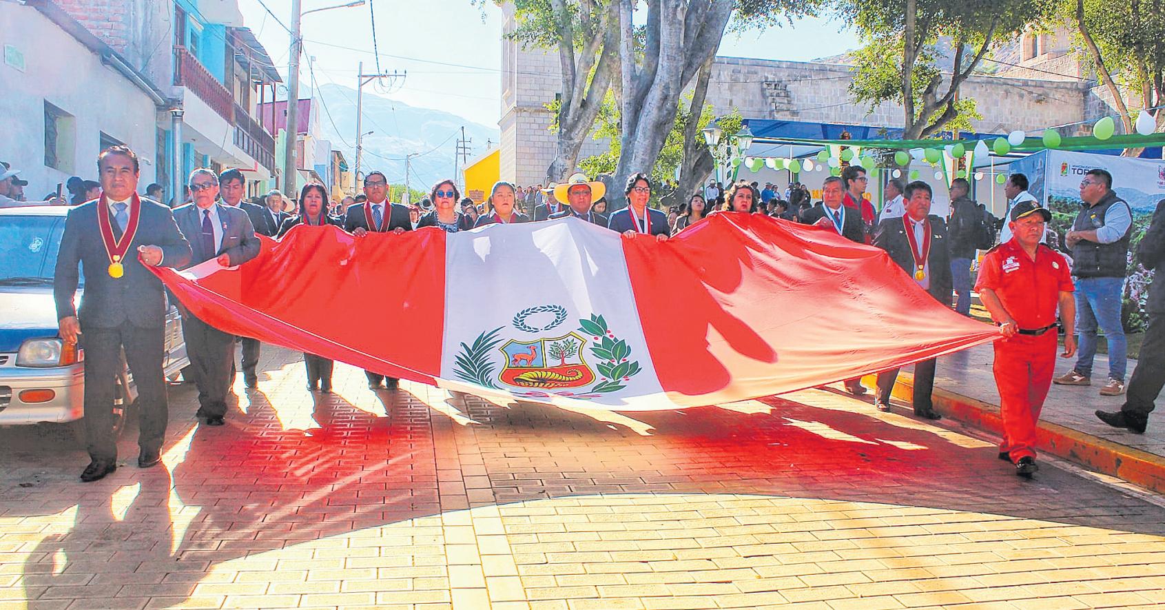 Lasautoridadese institucionesinvitadas realizaronelpaseodela Bandera.Luego,se cumplióconla ceremoniacentralde renovacióndel juramentodefidelidad alabandera.