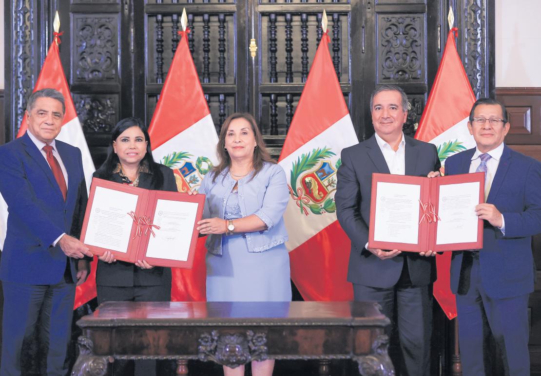 | Ceremonia de firma de leyes para impulsar el desarrollo y la competitividad del sector portuario.|