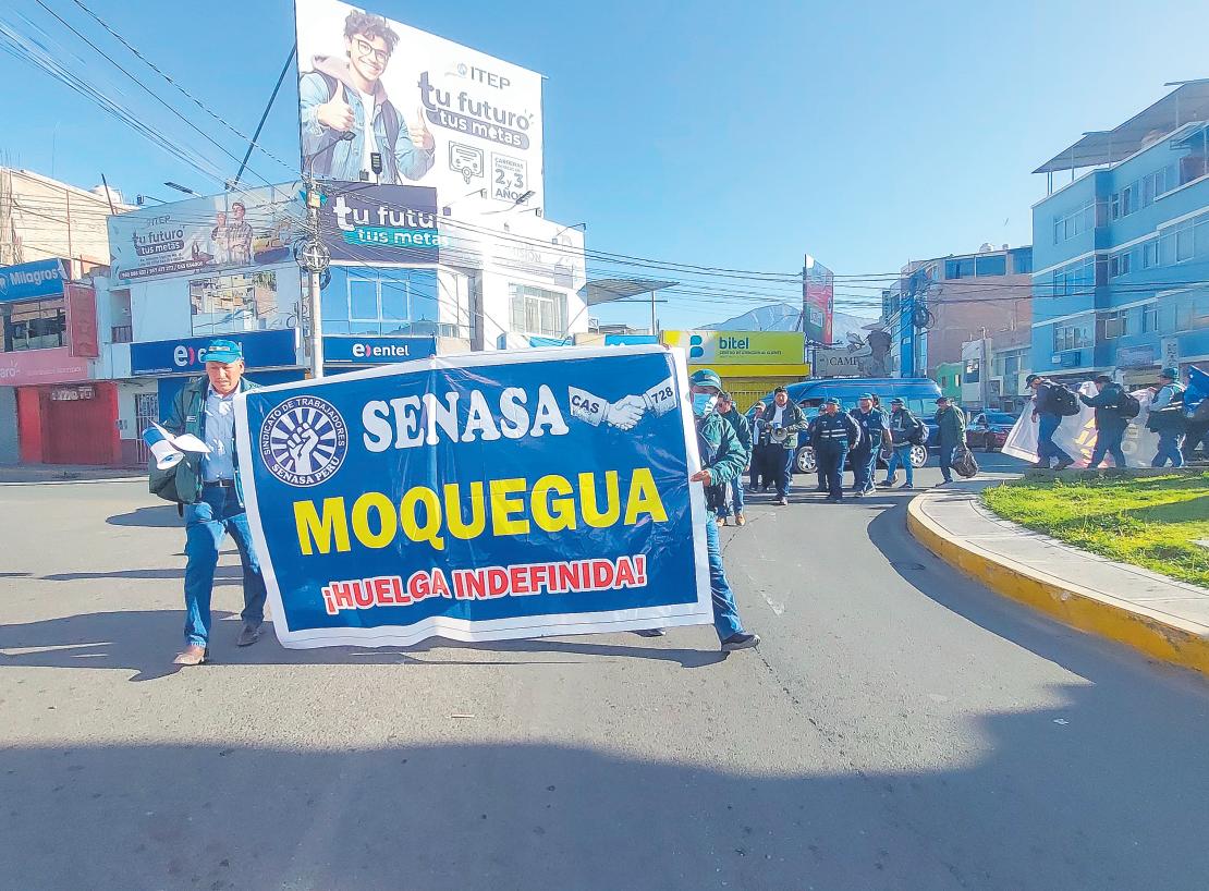 Trabajadores del Servicio Nacional de Sanidad Agraria (SENASA) de Moquegua ser unieron a la huelga nacional indefinida, que se inició este lunes24dejunio,debidoalincumplimiento de mejoras salariales que datan de hace 14 años.