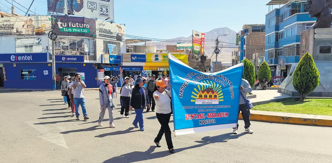 HastaelparqueSimónBolívar se constituyeron los afiliados al Sindicato de Trabajadores Administrativos del Sector Educación (SITRADE) de Moquegua,provenientes de diferentes instituciones educati-