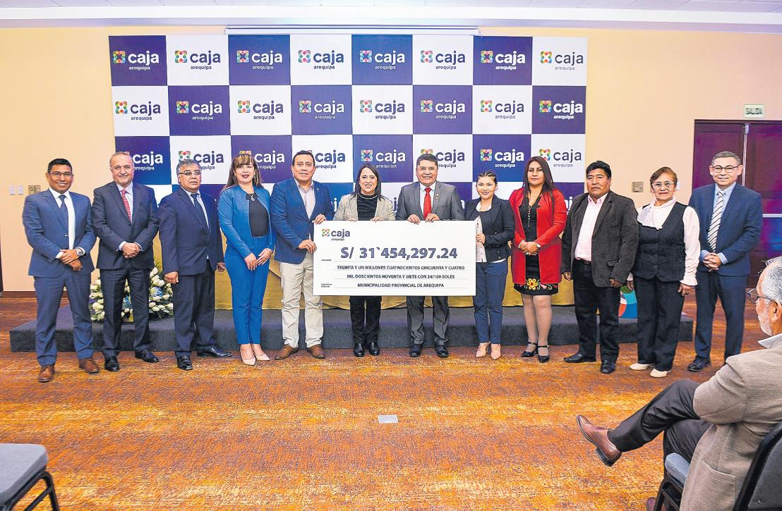 Enloquerespectaalasutilidadesentregadasalosmunicipios,enlosúltimosdiezycinco años, Caja Arequipa ha reportadodividendosalaMunicipalidad Provincial de Arequipa para realizar obras sociales por montos de S/ 323.7MM (10 años) y S/ 105.9MM (5 años), respectivamente. Estas cifras representan, en promedio, el 70% del total de dividendos entregadosporlasotrasdiezcajasmunicipales de ahorro y crédito,a pesar que, durante los años 2020 y 2021, el gobierno central emitió los decretos de urgencia 053-2020 y 018-2021 quenopermitieronelpagode dividendos.