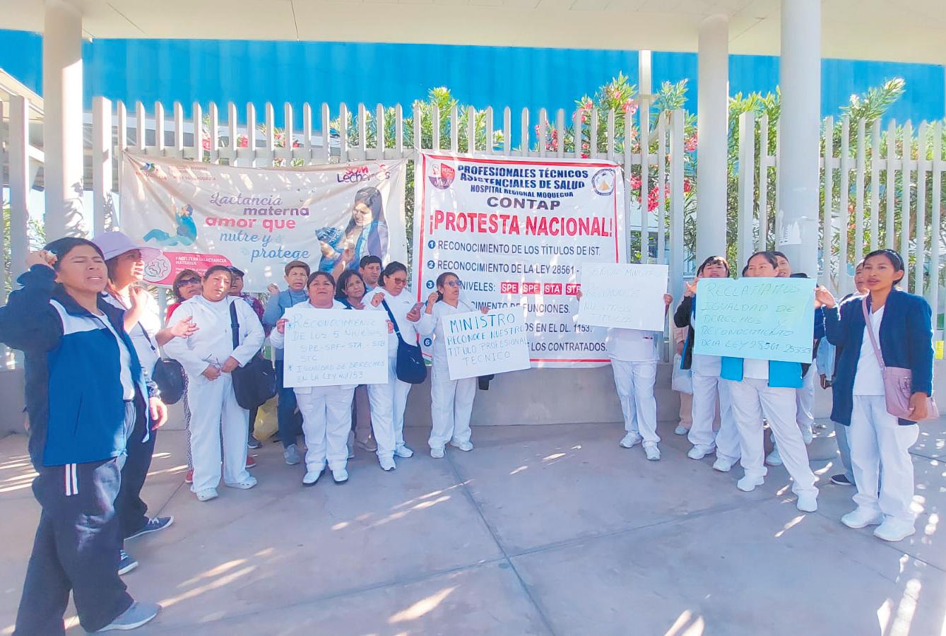 tenciales de Salud realizaron un plantón en los exteriores del Hospital Regional de Moquegua, acatando una pro-