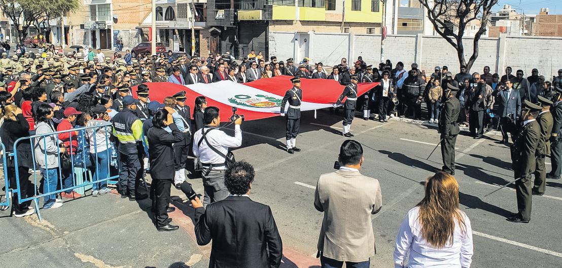 Diversas instituciones públicas y privadas participaron en el izamiento del Pabellón Nacional, el izamiento de la bandera de Moquegua, la in-