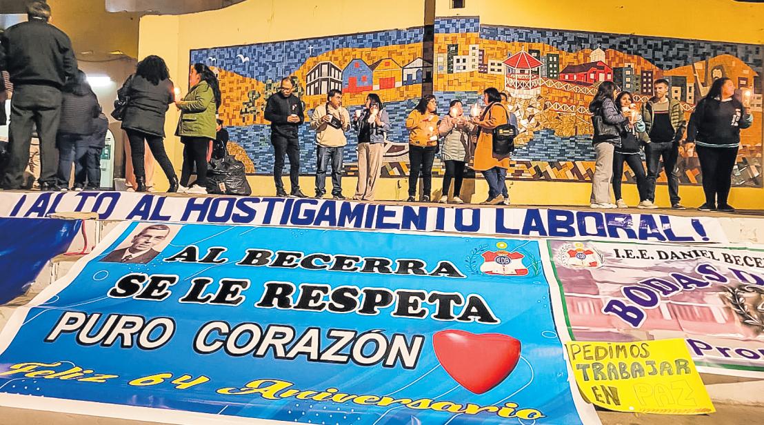 Docentes y padres de familia delaI E DanielBecerraOcampo realizaron una vigilia exigiendo la destitución de la directoradedichoplantel