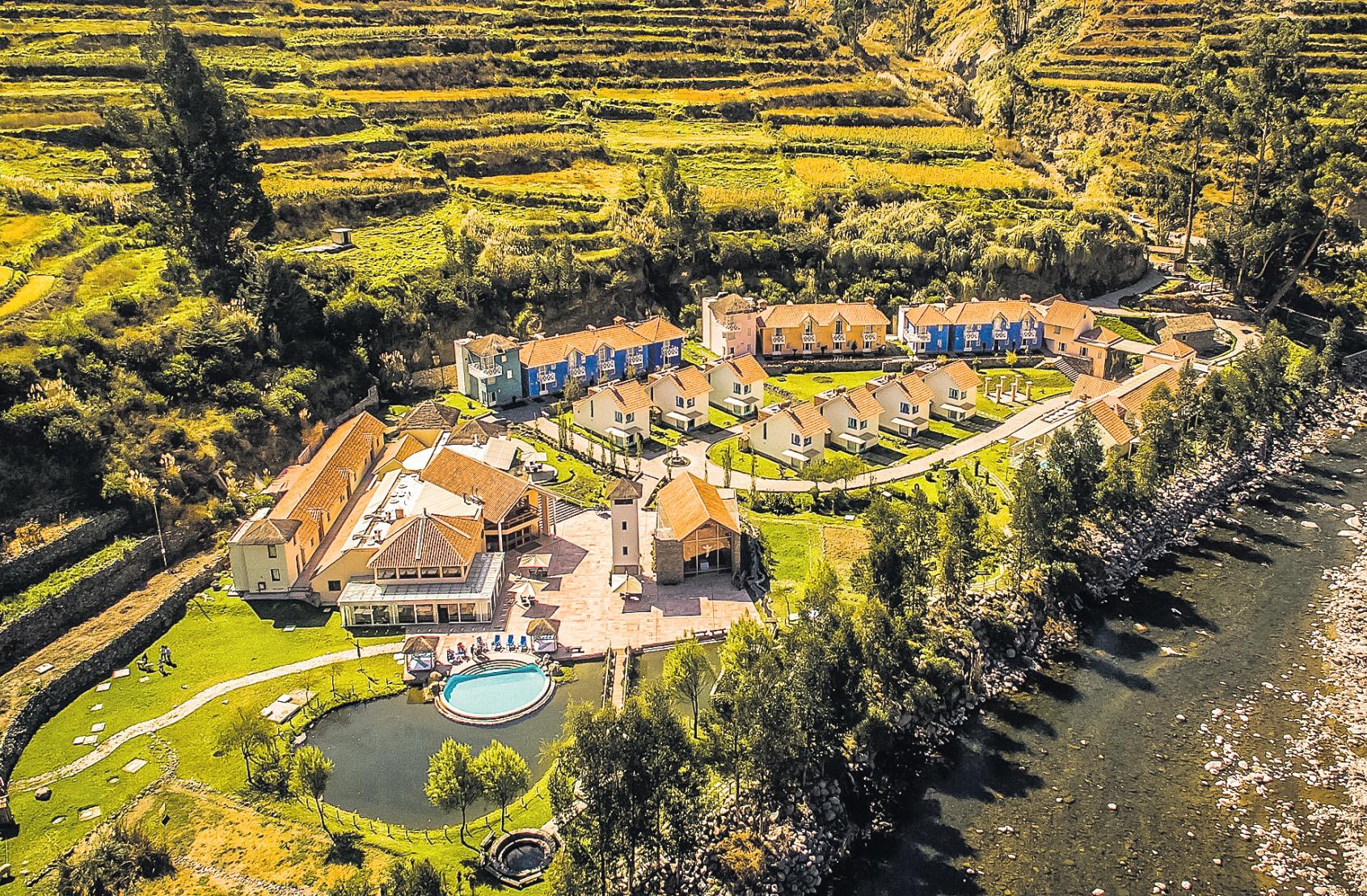 Coporaque,ubicadoa3,575 metros sobre el nivel del mar, alberga el hotel de 4 estrellas Aranwa Pueblito Encantado del Colca, un destino favorito tanto para turistas nacionales como extranjeros Este hotel ofrece amplias y variadas instalaciones, que incluyen piscina,lago,molinodeagua,pisci-