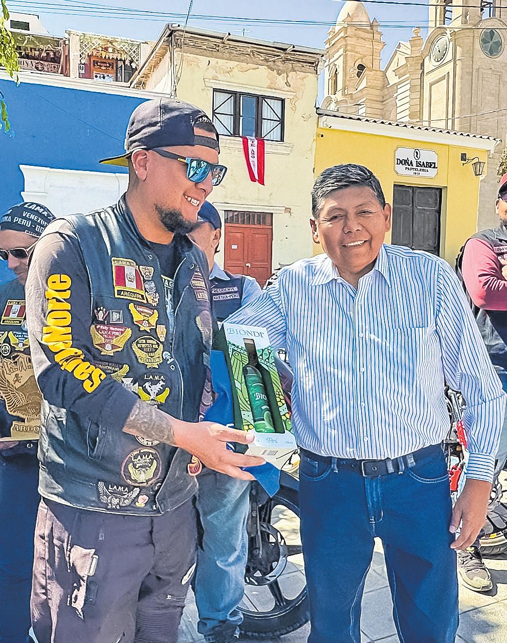 Miembros de la Asociación Latinoamericana de Motociclistas (LAMA) tuvo el cálido recibimiento por parte del alcalde provincial, John Larry Coayla, que resaltalaimportanciadelavisitaparalapromociónde Moqueguaanivelmundial.