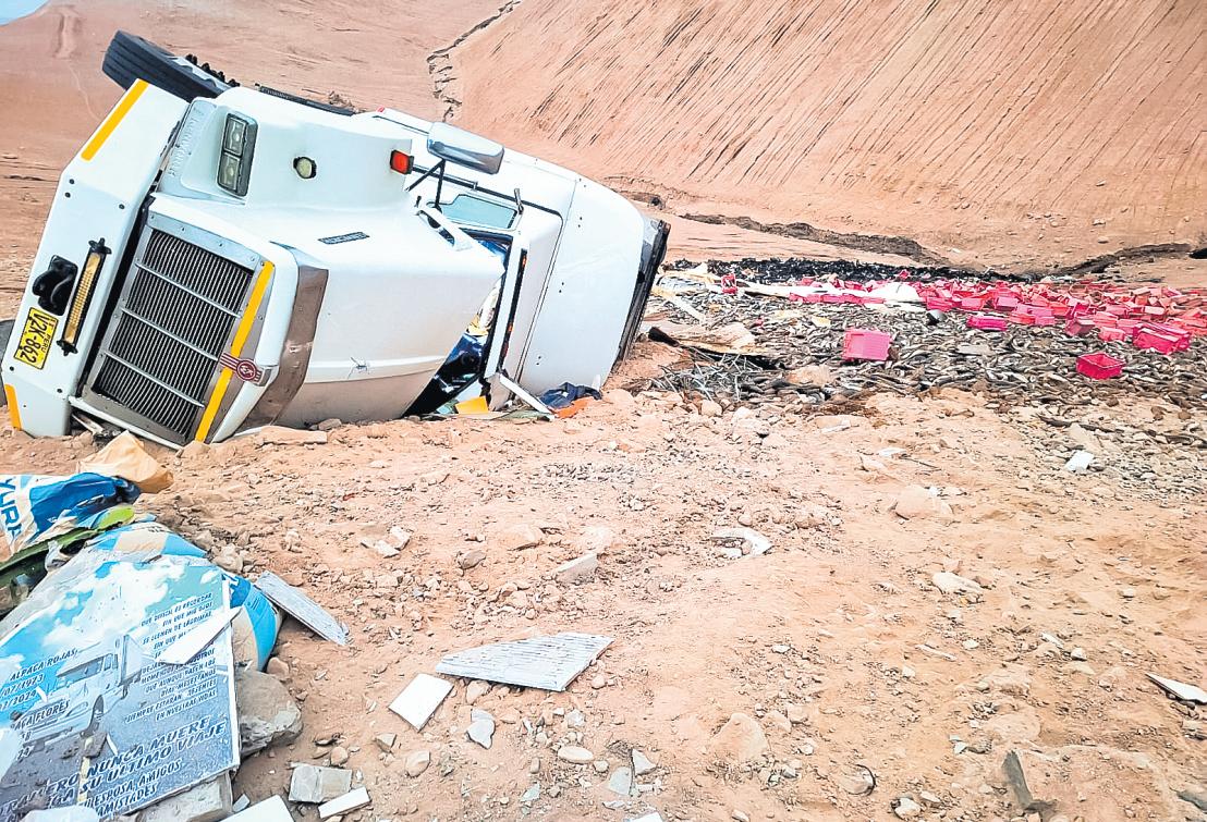 Untráilerquetransportaba19 toneladasdepescadojurelvolcóenelkilómetro188delacarretera Costanera Norte, en el distrito de Pacocha,provocando lesiones personales y daños materiales. El accidente ocurrió cuando el conductor, Rolando Francisco Velásquez delaMotta,de43años,sedesplazabadeIloaArequipa.