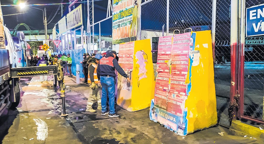 En un mega operativo realizadolamadrugadadeestemiércoles,lamunicipalidaddeJosé Luis Bustamante y Rivero en Arequipa, ejecutó la clausura y colocación de bloques de concretoendosterminalesinformales en la zona de Gratersa.