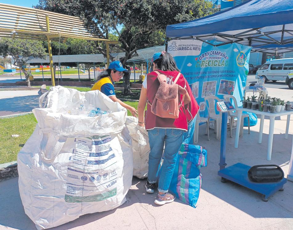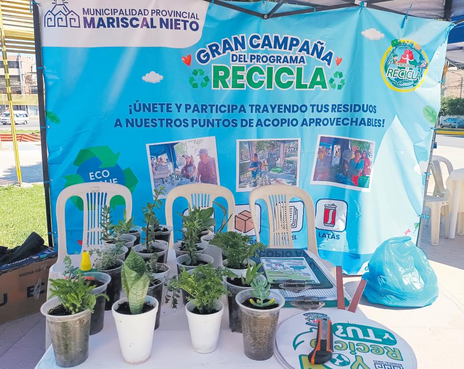 En el parque de la Juventud de la ciudad de Moquegua se llevó a cabo una campaña de reciclaje del programa RECICLA, organizada por la Subgerencia de Servicios PúblicosdelaMunicipalidadPro-