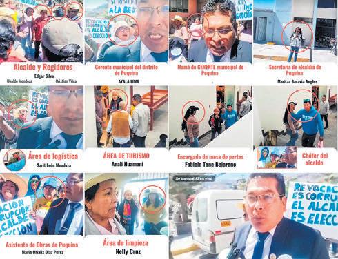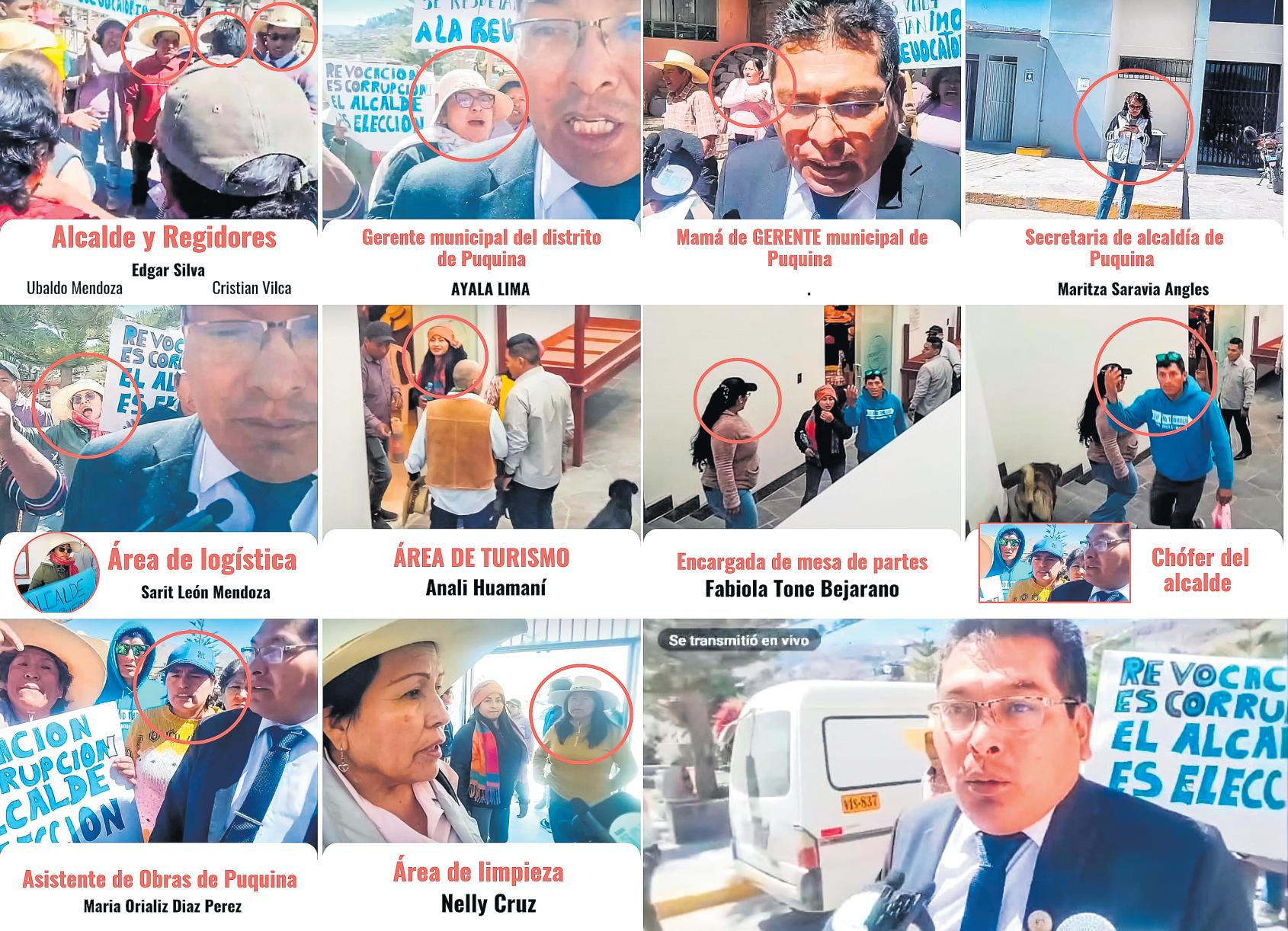 En el evento,se identificó a varios funcionarios y empleados municipales involucrados en las agresiones, incluyendo a Maritza Sarabia Angles, secretaria de alcaldía; Analú Huamaní, encargada de Turismo; Nelson Melgarejo Flores, operario de maquinaria; y Nelly Cruz,del área de limpieza.También se identificaron a familiares de funcionarios,co-