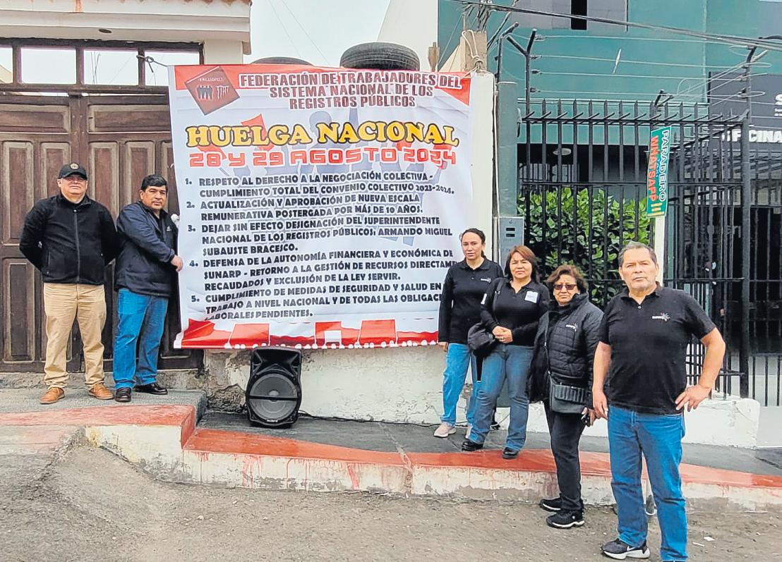 La Federación de Trabajadores del Sistema Nacional de los Registros Públicos acata una huelga de 48 horas los días 28 y 29 de agosto, exigiendomejorasenlaescalaremunerativa.