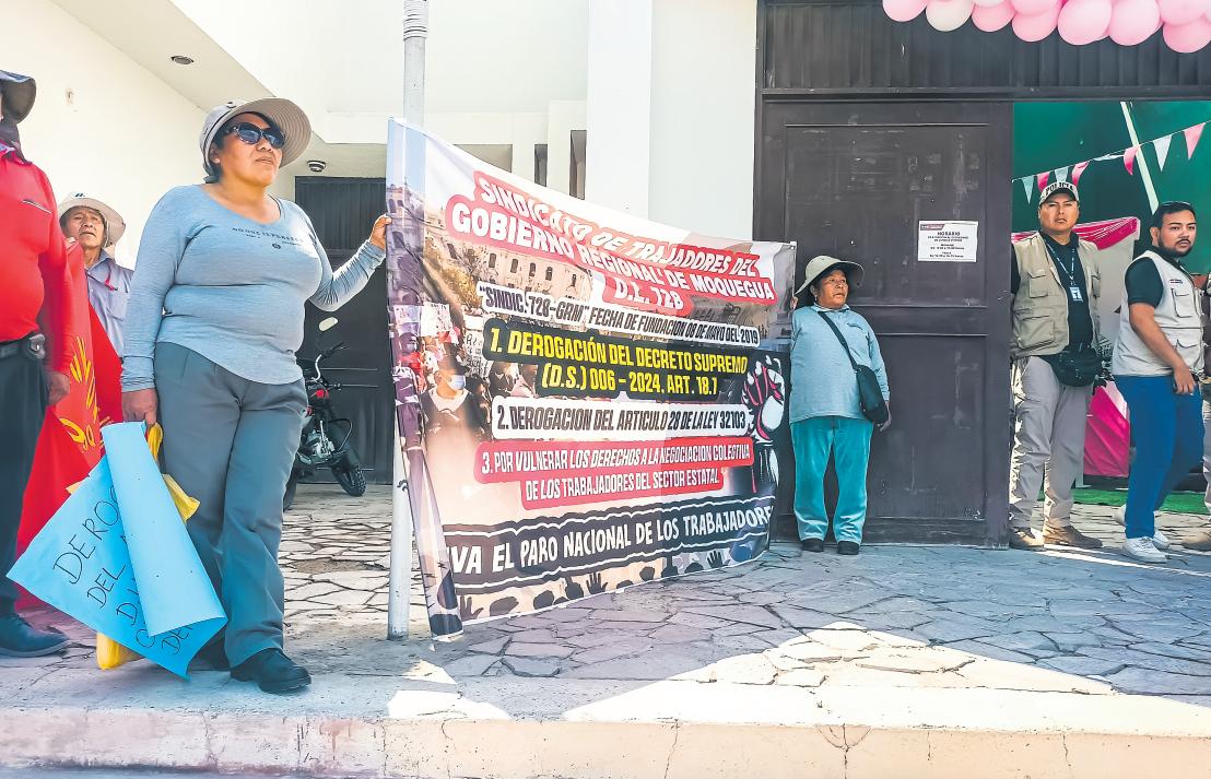 La base de Moquegua realizó un plantón en los exterioresdelasoficinasdeRegistros Públicos, portando carteles y unapancartaconunaseriede demandas,como el respeto al
