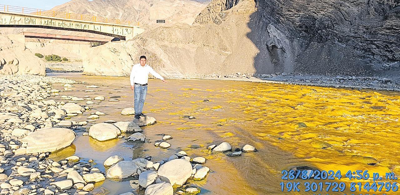 Nuevamente, el agua del río Coralaque presenta un color amarillento, según confirmó el alcalde del distrito de Quinistaquillas, Merlin Caytano Baldárrago.