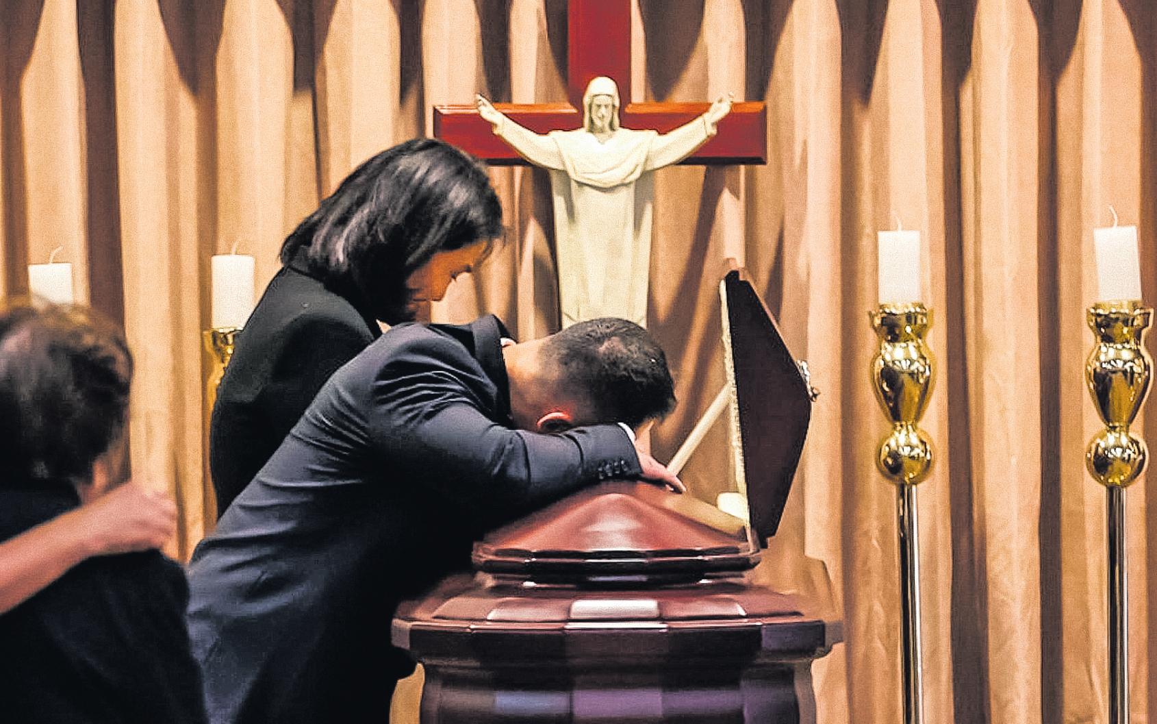 enlasalaNascadelMinisterio de Cultura,en San Borja.El féretro llegó al lugar escoltado por sus hijos y familiares cercanos, quienes acompañan el