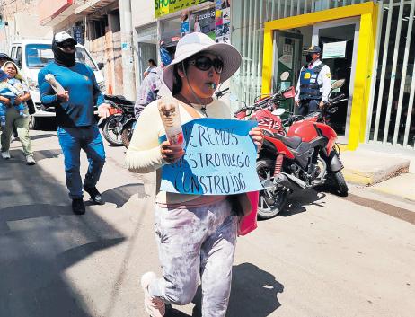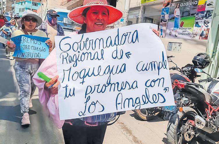 Padres de familia y alumnos de la I.E. Los Ángeles realizaron una movilización y plantón en el Gobierno Regional de Moquegua exigiendo la construccióndeunanuevainfraestructura, que aún no se concreta pese a los compromisos asumidos por la gober-
