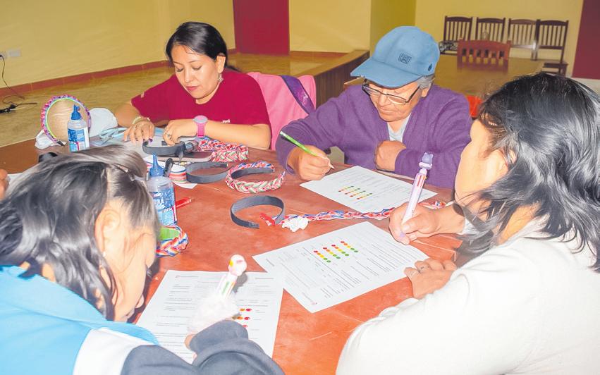 De manera similar, en el Centro Poblado de Yacango, un entusiasta grupo participó en el taller de vinchas andi-