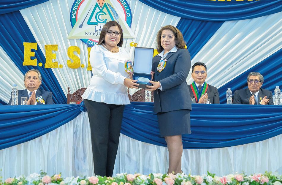 La ceremonia central contó con la presencia de autoridades invitadas. Durante el evento, se realizaron algunos reconocimientos, y se presentaron las necesidades y problemáticas de la institución. Asimismo, se cumplió con la colocación de ofrendas florales al busto de la ilustre moqueguana Mercedes Cabello deCarbonera.
