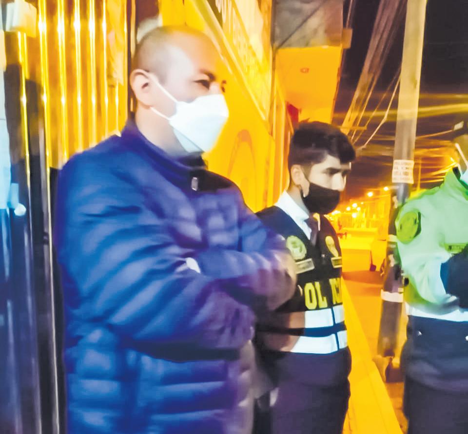 | Los denunciados, abogadoArone Mattos y PNPAnthony CabreraAlfaro.|