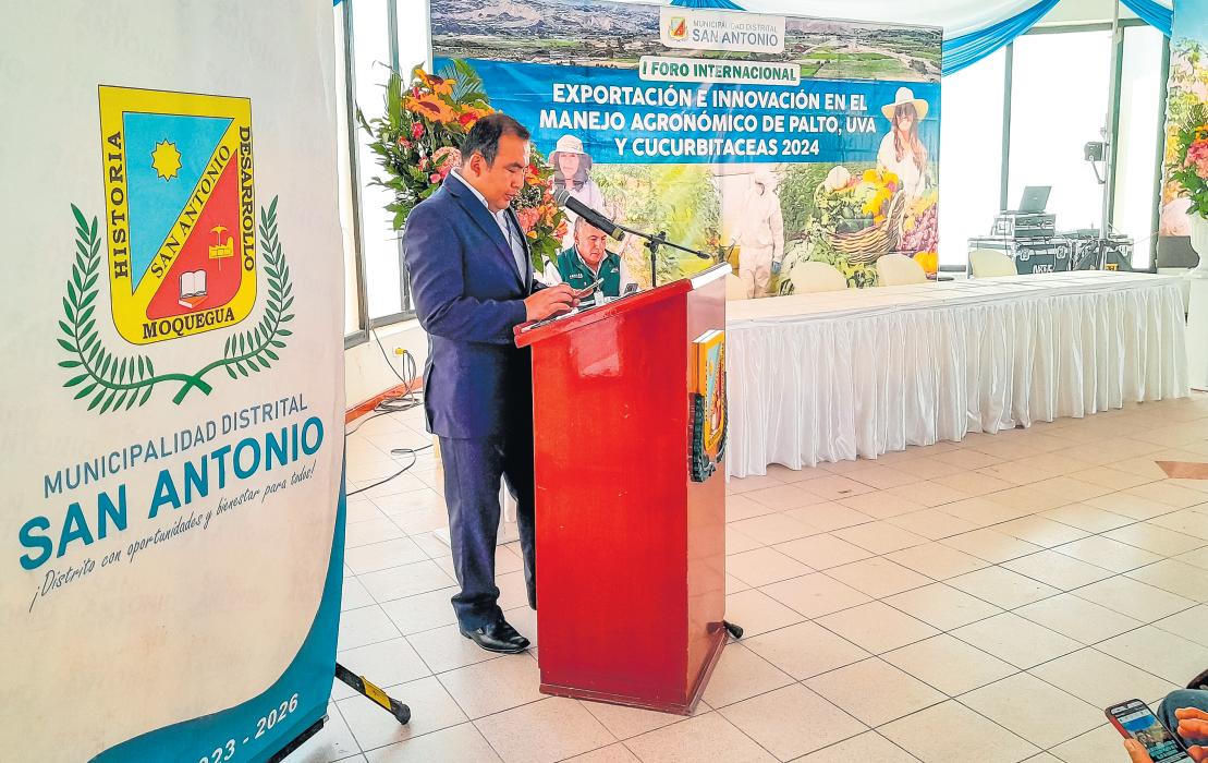 Elalcaldedistrital,Ing.Santos Villegas,destacó la importancia del foro en la promoción de la agroexportación, subrayandoqueparalograreste objetivo es esencial contar con agricultores competitivos ycapacitados.