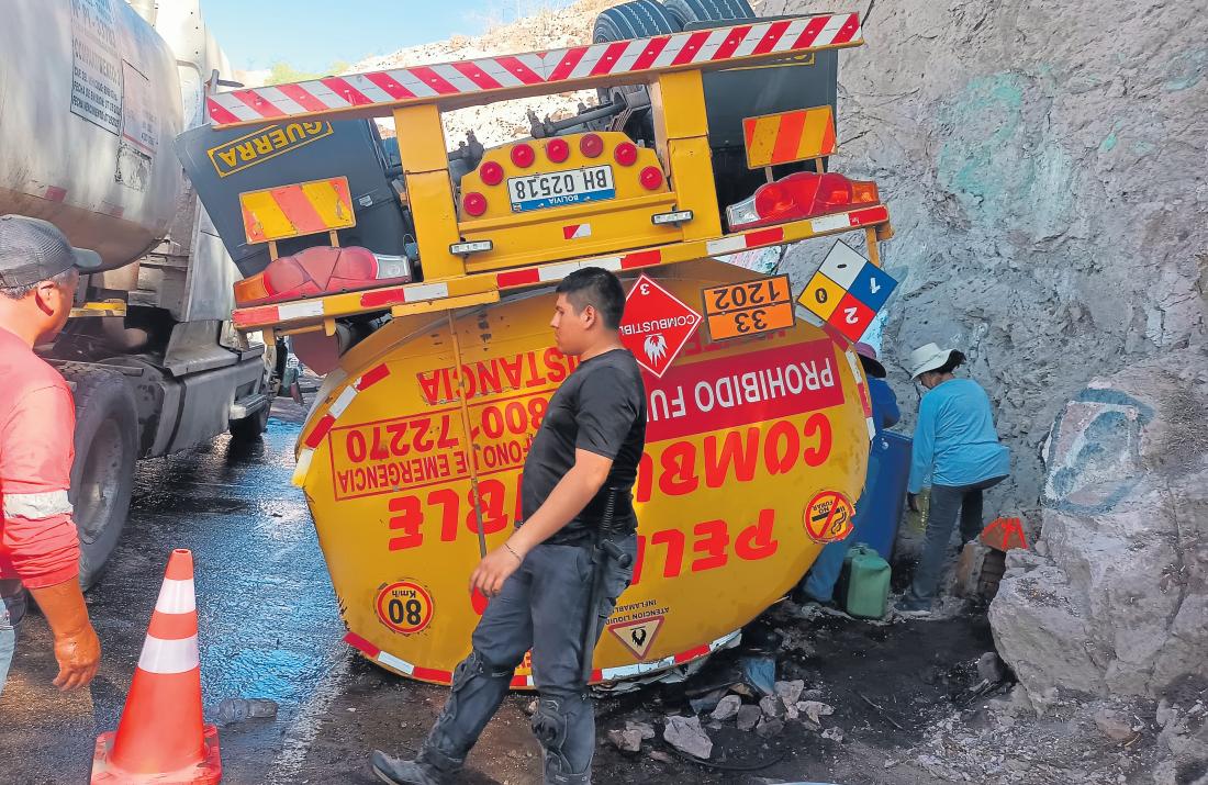 El vehículo realizaba la ruta Moquegua–Bolivia cuando volcó, lo que generó el temor de que el combustible derra-