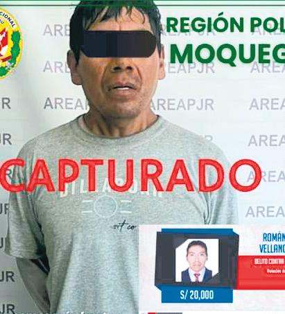 La Región Policial Moquegua, a través de la Policía Judicial, logró la captura de Román Alfredo Vellano Córdova, de 44años,elmiércoles30deoctubrede2024.