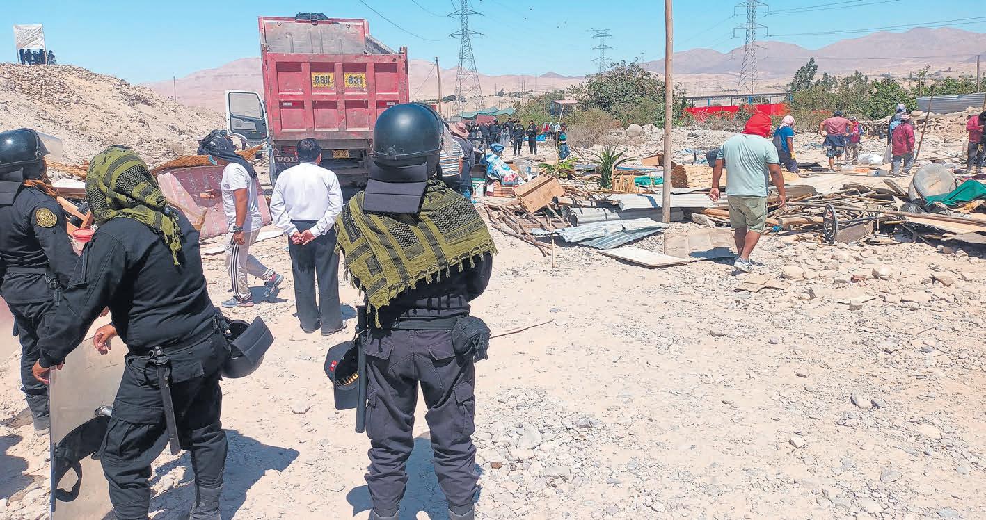 Uncontingentepolicialejecutó el desalojo de aproximadamente 37 familias que habían invadido un terreno de 2 hectáreas en la Parcela 10 del sector Siglo XXI, en el distrito de SanAntonio.