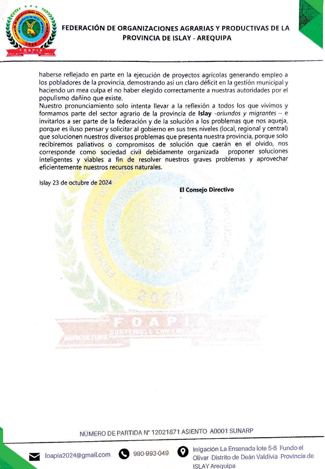 SUB DIRECTOR - ISLAY AREQUIPA Jury Baylón Delgado 984 753 877 subdirector@prensaregional.pe